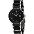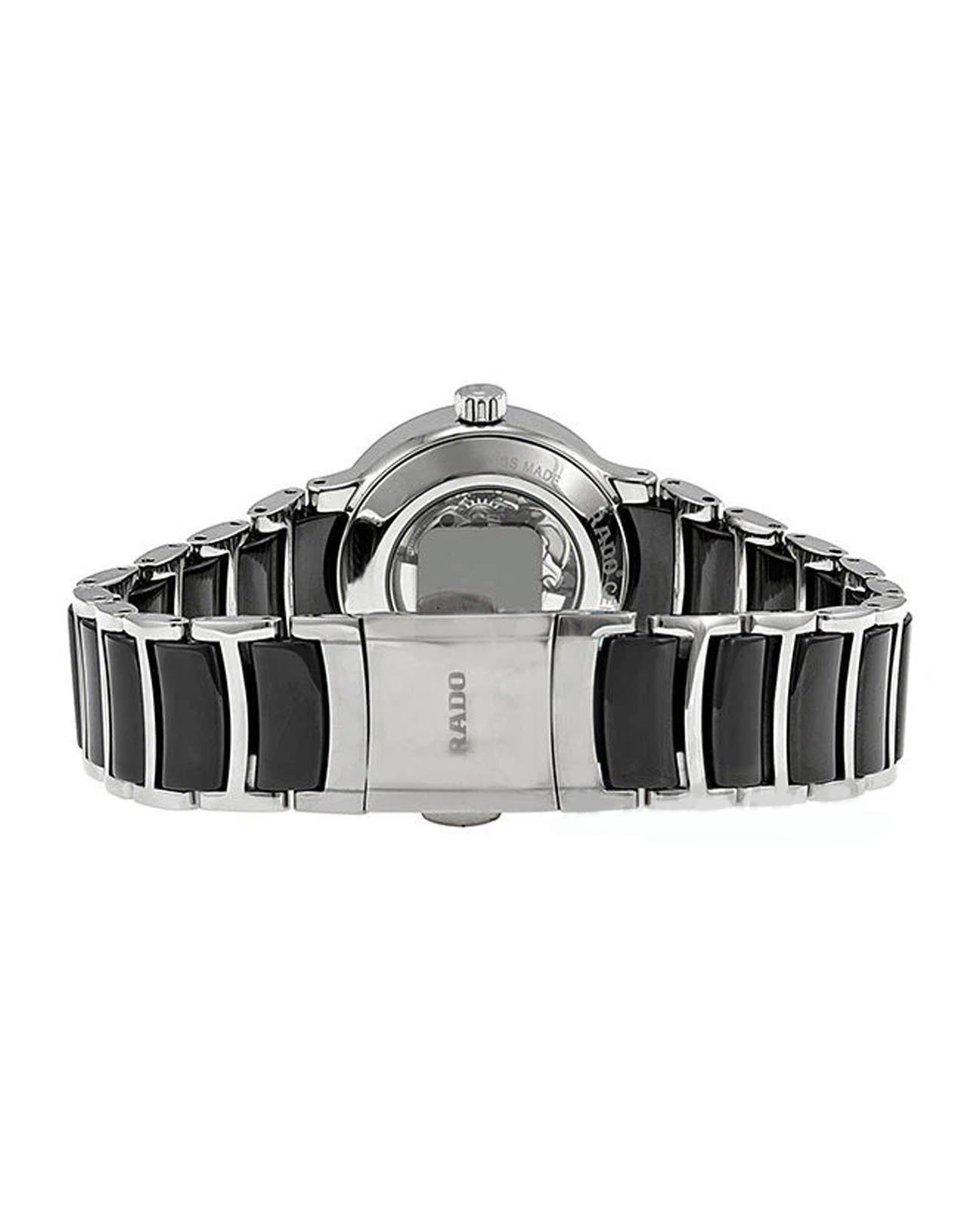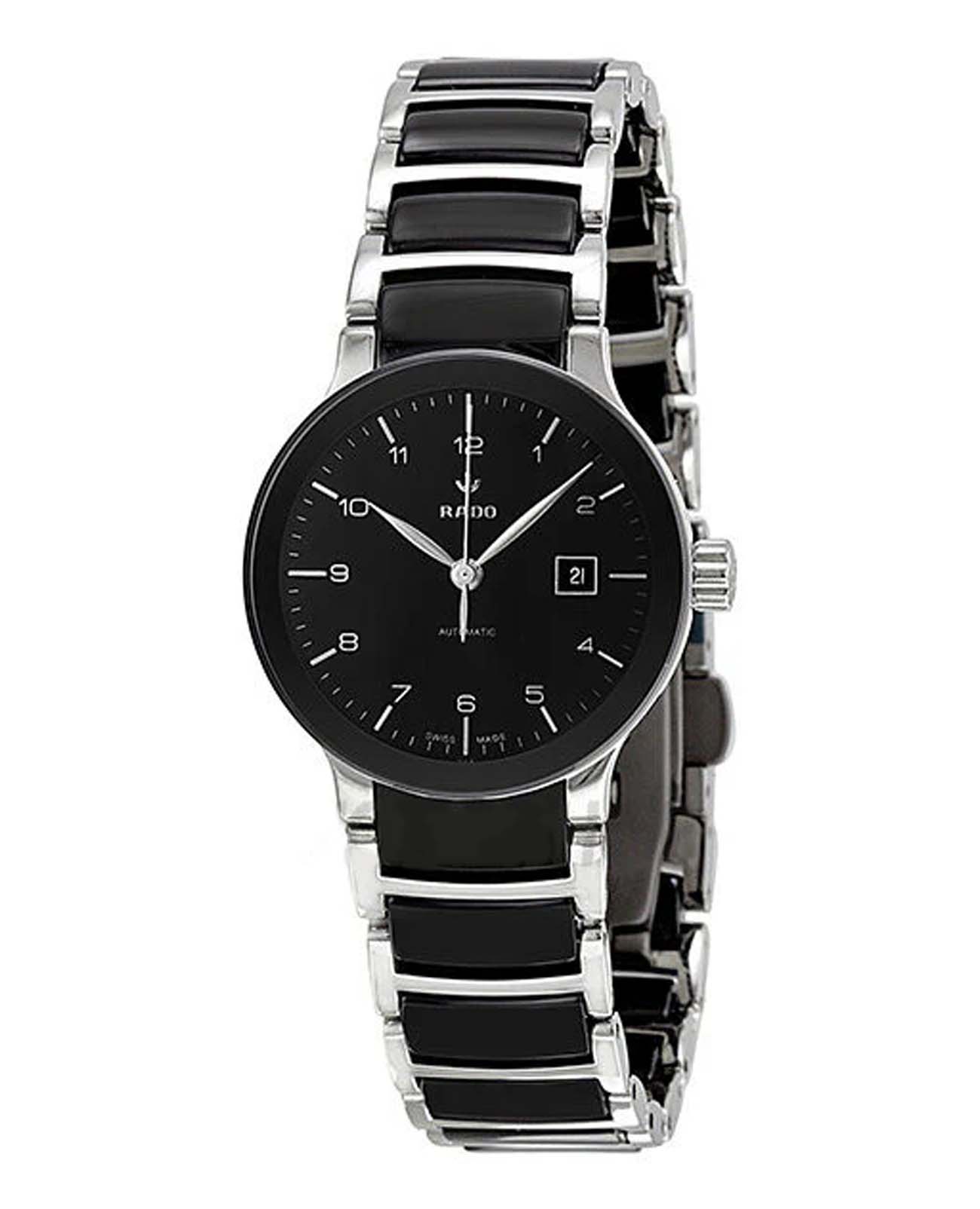 Швейцарские женские механические часы с автоподзаводом Rado Centrix Diamonds R30942162. Сапфировое стеклоСапфировое стеклоПрочный и надёжный материал из кристалла сапфира синтетического происхождения, характеризующийся особой твёрдостью и устойчивостью к царапинам и повреждениям. устойчивое к появлению царапин, обладающее высокой прозрачностью. Корпус часов изготовлен из нержавеющей стали. Окошко даты находится в положении 3 часа. Класс водозащиты: 30 метров, позволит защитить корпус от случайных брызг или капель дождя. Браслет из высокотехнологичной керамикиВысокотехнологичная керамикаИнновационный запатентованный Rado материал с гладкой или матовой поверхностью. Керамика за счёт кристаллической структуры обладает повышенной устойчивостью от возникновения царапин. Материал способен принимать температуру тела человека, обеспечивая невероятный комфорт при ношении. и нержавеющей стали на раскладной застёжкеРаскладная застёжкаТакой тип застёжки используется только на браслетах из металла. Она никогда не раскрывается полностью, происходит разделение на 2 и более частей. Раскладывающая застёжка снизит вероятность потери часов к минимуму..