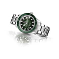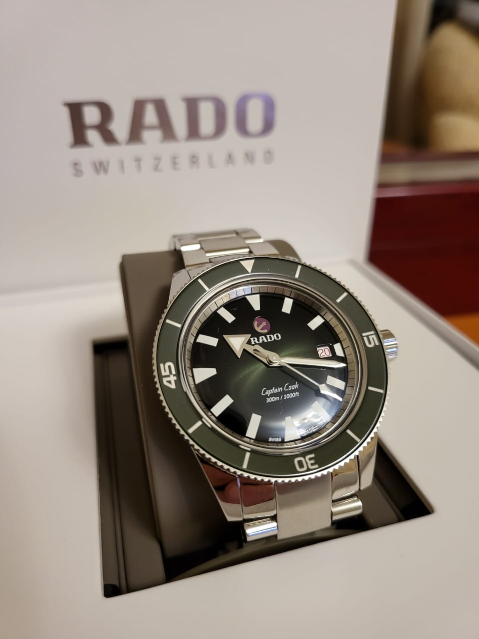 Премиальная модель обладает винтажным характером, зелёный циферблат обращает наше внимание на оригинальные стрелки в виде меча и стрелы. Часы обладают высокими показателями водонепроницаемости - сохранение герметичности до 30 бар, что стало возможным благодаря задней крышке и заводной головке с винтовыми фиксаторами. Автоподзавод. Швейцарский калибр ETA C07.611 с 80-часовым резервом хода. Антибликовая обработка сапфирового стекла. Корпус из хирургической стали 316L, безельБезельВнешний ободок, закрепляющий стекло. В спортивных часах так называется поворотное кольцо с делениями на циферблате, выполняет роль таймера – замеряет отрезки времени на шкале. Неподвижный безель – элемент декора. Однонаправленно вращающийся безель на дайверских часах позволяет фиксировать моменты погружения и выныривания на поверхность. из высокотехнологичной керамикиВысокотехнологичная керамикаИнновационный запатентованный Rado материал с гладкой или матовой поверхностью. Керамика за счёт кристаллической структуры обладает повышенной устойчивостью от возникновения царапин. Материал способен принимать температуру тела человека, обеспечивая невероятный комфорт при ношении.. Прочный стальной браслет. Отображение числа. Диаметр корпуса: 42 мм.