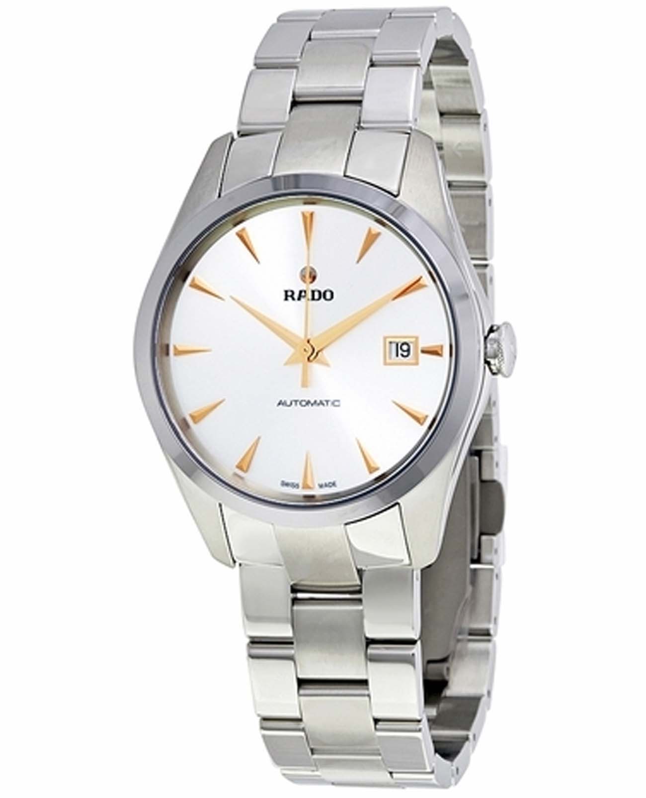 Мужские механические швейцарские часы с автоподзаводом Rado Hyperchrome Automatic R32115113. Сапфировое стеклоСапфировое стеклоПрочный и надёжный материал из кристалла сапфира синтетического происхождения, характеризующийся особой твёрдостью и устойчивостью к царапинам и повреждениям. устойчивое к мелким механическим повреждениям. Корпус часов изготовлен из нержавеющей стали. Окошко даты находится в положении 3 часа. Класс водозащиты: 50 метров, позволит защитить корпус от случайных брызг или капель дождя. Стальной браслет на раскладной застёжкеРаскладная застёжкаТакой тип застёжки используется только на браслетах из металла. Она никогда не раскрывается полностью, происходит разделение на 2 и более частей. Раскладывающая застёжка снизит вероятность потери часов к минимуму..