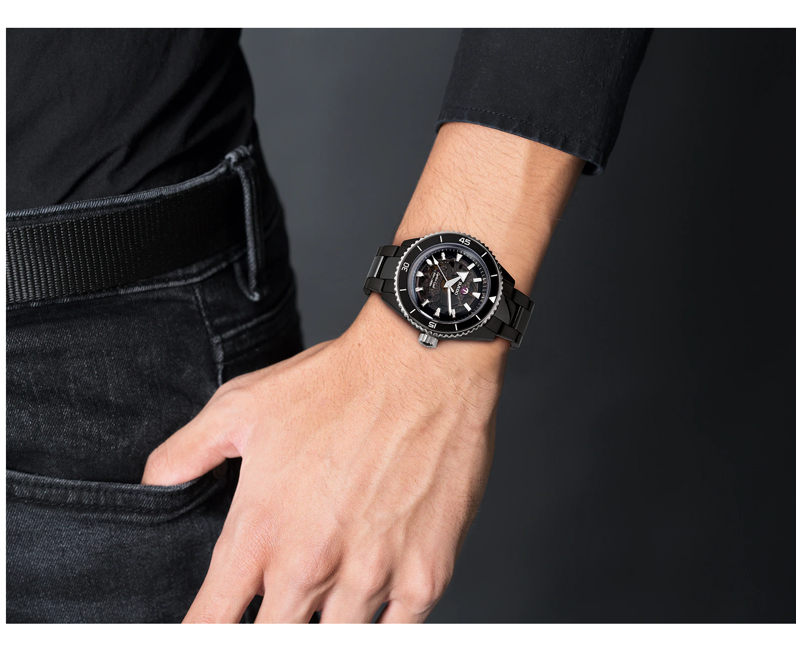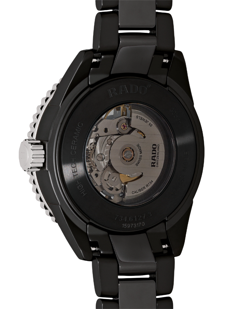 Премиальная модель обладает винтажным характером, чёрный циферблат обращает наше внимание на оригинальные стрелки в виде меча и стрелы. Часы обладают высокими показателями водонепроницаемости - сохранение герметичности до 20 бар, что стало возможным благодаря завинчивающейся задней крышке и заводной головке. Автоподзавод. Антибликовая обработка сапфирового стекла. Корпус из керамики, безельБезельВнешний ободок, закрепляющий стекло. В спортивных часах так называется поворотное кольцо с делениями на циферблате, выполняет роль таймера – замеряет отрезки времени на шкале. Неподвижный безель – элемент декора. Однонаправленно вращающийся безель на дайверских часах позволяет фиксировать моменты погружения и выныривания на поверхность. из высокотехнологичной керамикиВысокотехнологичная керамикаИнновационный запатентованный Rado материал с гладкой или матовой поверхностью. Керамика за счёт кристаллической структуры обладает повышенной устойчивостью от возникновения царапин. Материал способен принимать температуру тела человека, обеспечивая невероятный комфорт при ношении.. Прочный керамический браслет. Отображение числа. Диаметр корпуса: 43 мм.