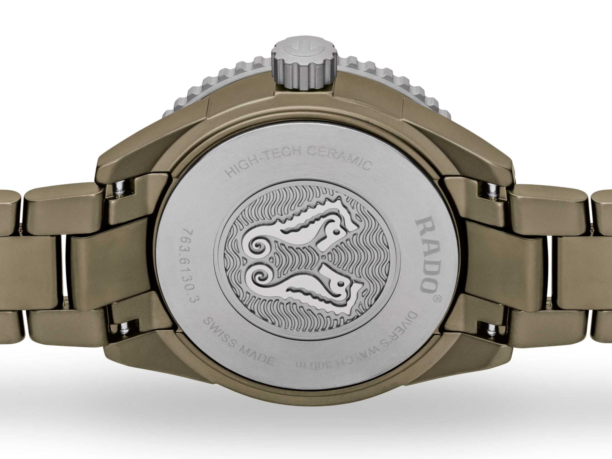 Высокотехнологичные керамические часы Captain Cook для дайверов (300 WR). Стрелки и индексы дайверских часов, сертифицированных по стандарту ISO 6425, покрыты SuperLuminova®, что обеспечивает отличную видимость на матовом оливково-зеленом циферблате. 43-миллиметровый моноблочный корпус изготовлен из матовой оливково-зеленой высокотехнологичной керамикиВысокотехнологичная керамикаИнновационный запатентованный Rado материал с гладкой или матовой поверхностью. Керамика за счёт кристаллической структуры обладает повышенной устойчивостью от возникновения царапин. Материал способен принимать температуру тела человека, обеспечивая невероятный комфорт при ношении., а вращающийся безельБезельВнешний ободок, закрепляющий стекло. В спортивных часах так называется поворотное кольцо с делениями на циферблате, выполняет роль таймера – замеряет отрезки времени на шкале. Неподвижный безель – элемент декора. Однонаправленно вращающийся безель на дайверских часах позволяет фиксировать моменты погружения и выныривания на поверхность. - из полированной нержавеющей стали. Внутри механизм Rado R763 с автоподзаводом превосходит стандартные требования по проверке точности в 3-5 положениях и обеспечивает 80 часов запаса хода. Эта модель поставляется с матовым оливково-зеленым высокотехнологичным керамическим браслетом. Какой бы ни была ваша область исследований, ваш высокотехнологичный керамический дайвер Captain Cook станет надежным партнером на долгие годы.