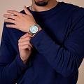 Captain Cook Automatic — это воплощение точности и стиля, созданный для тех, кто ценит надёжность в любых условиях. Полированный корпус диаметром 39 мм выполнен из нержавеющей стали и дополнен вращающимся безелем из того же материала с вставкой из светло-синей керамики Ceramos™ и серебристыми маркерами. Часы защищены сапфировым стекломСапфировое стеклоПрочный и надёжный материал из кристалла сапфира синтетического происхождения, характеризующийся особой твёрдостью и устойчивостью к царапинам и повреждениям. коробчатой формы, изготовленным при температуре свыше 2000 °C и покрытым антибликовым слоем с обеих сторон. Это обеспечивает исключительную чёткость обзора и высокую устойчивость к царапинам — по твёрдости оно уступает только алмазу. Сердце модели — калибр R763 с автоподзаводом, разработанный для максимальной надёжности. Механизм имеет 25 драгоценных камней, регулируется в пяти положениях и оснащён антимагнитной спиралью Nivachron™Nivachron™Специально разработанный инновационный сплав Nivachron™ повышает устойчивость часов к воздействию магнитных полей., повышающей стабильность хода. Запас хода составляет внушительные 80 часов, что делает часы идеальными для активного образа жизни. Циферблат с градиентом от светло-синего к серебристому украшен индексами и стрелками из рутениевого цвета, покрытыми белым люминесцентным составом Super-LumiNova® для отличной читаемости в темноте. Окошко даты расположено в положении 3 часов, а на задней крышке выгравирован символический якорь — знак принадлежности к коллекции Captain Cook. Браслет в стиле «рисовые зёрна» выполнен из комбинированной стали с полированной и матовой отделкой и закрывается трёхсгибной застёжкой из нержавеющей стали, обеспечивающей комфорт и уверенную фиксацию на запястье. Часы водонепроницаемы до 300 метров (), что делает их готовыми к любым приключениям — будь то подводное плавание или деловая встреча. Captain Cook Automatic сочетает в себе швейцарское мастерство, современные технологии и элегантный дизайн, становясь универсальным аксессуаром для любого случая.