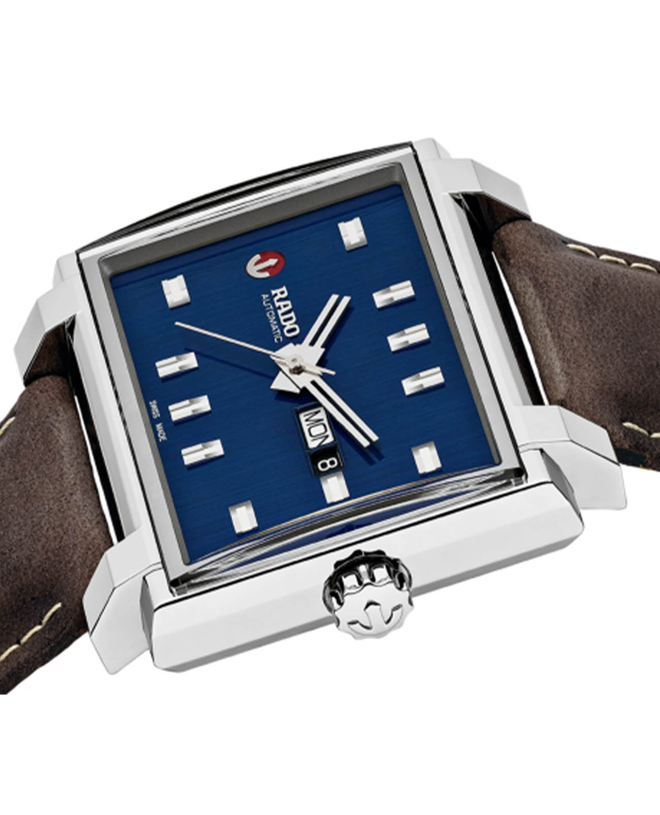 Часы Rado Watch Tradition 1965 XL ограниченной серией R33017205. Вдохновленные видом на горизонт Манхэттена, часы 1965 original отличаются неповторимым геометрическим дизайном, включающим такие элементы, как прямоугольные часовые и минутные метки. Квадратное окошко для индикации даты и культовый красный якорь Rado в положении "9 часов".Часы будут самыми популярными благодаря классической сине-черной цветовой гамме, легкому титановому корпусу и впечатляющему автоматическому калибру. ETA C07.621. Сапфировое стеклоСапфировое стеклоПрочный и надёжный материал из кристалла сапфира синтетического происхождения, характеризующийся особой твёрдостью и устойчивостью к царапинам и повреждениям.. Корпус из титана. Лимитированная серия - 1965 экземпляров.