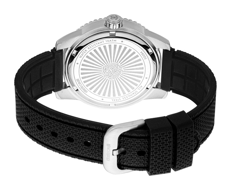Погрузитесь в мир роскоши и безупречного стиля с мужскими наручными часами ROBERTO CAVALLI RC5G084P1025. Эти часы – воплощение смелого дизайна и итальянской элегантности, созданные для мужчины, который ценит внимание к деталям и не боится заявить о себе. Круглый корпус диаметром 42 мм выполнен из нержавеющей стали, толщина корпуса составляет 11 мм, что придает модели выразительный внешний вид и надежную защиту от внешних воздействий. Циферблат, искусно оформленный фирменными элементами Roberto Cavalli, притягивает взгляд и подчеркивает ваш безупречный вкус. Часы оснащены кварцевым механизмом, также обладают функцией отображения даты, что делает их удобными для ежедневного использования. Минеральное стеклоМинеральное стеклоМинеральное стекло представляет собой искусственно выращенный минерал кварца. Такое стекло отличается особой устойчивостью к повреждениям и царапинам. Уступает по некоторым качествам сапфировому стеклу. защищает часы от царапин. Водозащита 100 метров, позволит плавать, нырять и заниматься другими водными видами спорта. Силиконовый ремешок на стандартной застёжке обеспечивает комфортное ношение. Поворотный безельБезельВнешний ободок, закрепляющий стекло. В спортивных часах так называется поворотное кольцо с делениями на циферблате, выполняет роль таймера – замеряет отрезки времени на шкале. Неподвижный безель – элемент декора. Однонаправленно вращающийся безель на дайверских часах позволяет фиксировать моменты погружения и выныривания на поверхность. с PVD-покрытиемPVDУльтратонкое покрытие наносится в технике вакуумного напыления, сочетает в себе нитрид титана особой прочности со слоем золота или оксида хрома. Несёт в себе декоративную или защитную функцию.. Стрелки и метки с люминесцентным покрытиемЛюминесцентное покрытиеПозволяет считывать показания времени в темноте. Производители наносят на стрелки, часовые индексы, безель или поверхность циферблата светонакопительный состав, дающий холодное свечение. обеспечивают отличную читаемость в любое время суток.