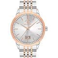 Мужские кварцевые Santa Barbara Polo & Racquet Club SB.1.10588-5 — воплощение элегантности и технического совершенства. Корпус из нержавеющей стали серебристого цвета, диаметром 40 мм, что делает их устойчивыми к внешним воздействиям и придает благородный вид. Изящный циферблат защищён минеральным стекломМинеральное стеклоМинеральное стекло представляет собой искусственно выращенный минерал кварца. Такое стекло отличается особой устойчивостью к повреждениям и царапинам. Уступает по некоторым качествам сапфировому стеклу., устойчивое к царапинам и механическим повреждениям. Браслет из стали с частичным IP-покрытиемIP-покрытиеМетод ионного напыления. Демонстрирует повышенную устойчивость к истиранию, окислению и химическим веществам. Под воздействием высокого давления и температуры около 1500°C молекулы металла надёжно соединяются с частицами корпуса часов. на застёжке-бабочке с кнопкамиЗастёжка "бабочка"Такой вид застёжки дополняется предохранителями, помогающими избежать случайного раскрытия браслета. Обладают изящным исполнением. обеспечивает комфортное и безопасное ношение. Окошко даты находится в положении 6 часов. Декоративный безельБезельВнешний ободок, закрепляющий стекло. В спортивных часах так называется поворотное кольцо с делениями на циферблате, выполняет роль таймера – замеряет отрезки времени на шкале. Неподвижный безель – элемент декора. Однонаправленно вращающийся безель на дайверских часах позволяет фиксировать моменты погружения и выныривания на поверхность. с IP-покрытиемIP-покрытиеМетод ионного напыления. Демонстрирует повышенную устойчивость к истиранию, окислению и химическим веществам. Под воздействием высокого давления и температуры около 1500°C молекулы металла надёжно соединяются с частицами корпуса часов. цвета розового золота. Водонепроницаемость 50 метров позволит защитить корпус от случайных брызг или капель дождя. Идеальный выбор для тех, кто ценит элегантный дизайн и качество.