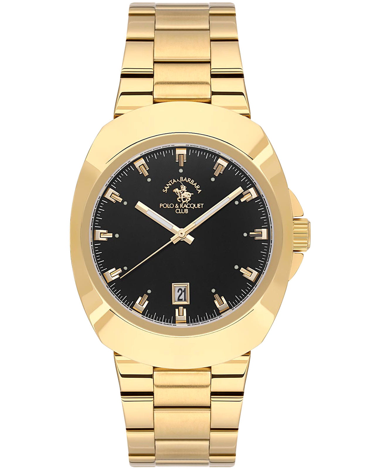 Мужские кварцевые часы Santa Barbara Polo & Racquet Club SB.1.10600-3 — это стильный и практичный аксессуар для повседневного ношения. Корпус необычной формы размером 39 мм х 47 мм выполнен из стали с IP-покрытиемIP-покрытиеМетод ионного напыления. Демонстрирует повышенную устойчивость к истиранию, окислению и химическим веществам. Под воздействием высокого давления и температуры около 1500°C молекулы металла надёжно соединяются с частицами корпуса часов. с полированной отделкой. Циферблат выполнен по технологии Sunray (солнечные лучи) и украшен фирменным логотипом. Накладные метки в виде штрихов. Стрелки с люминесцентным покрытиемЛюминесцентное покрытиеПозволяет считывать показания времени в темноте. Производители наносят на стрелки, часовые индексы, безель или поверхность циферблата светонакопительный состав, дающий холодное свечение., обеспечивающим хорошую читаемость в темноте. Циферблат защищён минеральным стекломМинеральное стеклоМинеральное стекло представляет собой искусственно выращенный минерал кварца. Такое стекло отличается особой устойчивостью к повреждениям и царапинам. Уступает по некоторым качествам сапфировому стеклу.. Кварцевый механизм высокой точности. Часы оснащены стальным браслетом с IP-покрытиемIP-покрытиеМетод ионного напыления. Демонстрирует повышенную устойчивость к истиранию, окислению и химическим веществам. Под воздействием высокого давления и температуры около 1500°C молекулы металла надёжно соединяются с частицами корпуса часов. золотистого цвета на раскладной застёжкеРаскладная застёжкаТакой тип застёжки используется только на браслетах из металла. Она никогда не раскрывается полностью, происходит разделение на 2 и более частей. Раскладывающая застёжка снизит вероятность потери часов к минимуму.. Окошко даты находится в положении 6 часов. Рифленая заводная головка с защитой. Водонепроницаемость 50 м позволяет использовать часы в повседневных условиях. Идеальный выбор для тех, кто ценит функциональность, стиль и качество.