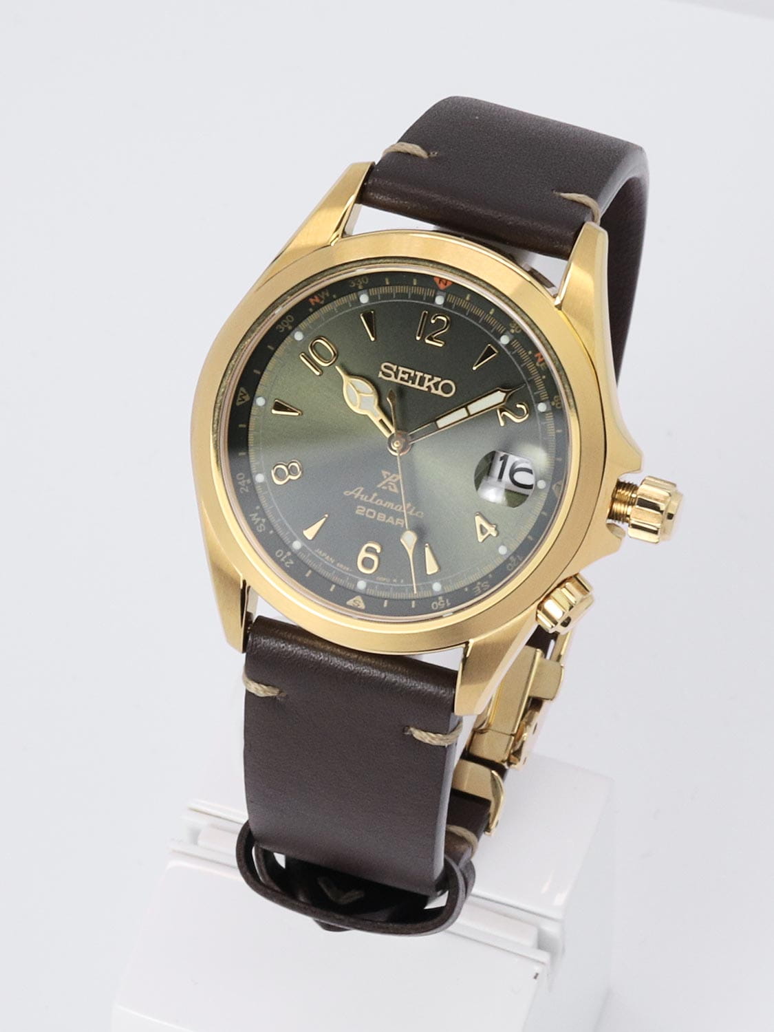 Мужские механические часы с автоподзаводом Seiko — это элегантная модель из серии Prospex, воплощающая японское мастерство и точность. Корпус диаметром 39,5 мм и толщиной 13 мм выполнен из стали с PVD-покрытиемPVDУльтратонкое покрытие наносится в технике вакуумного напыления, сочетает в себе нитрид титана особой прочности со слоем золота или оксида хрома. Несёт в себе декоративную или защитную функцию.. Циферблат зелёного цвета оформлен по технологии Sunray («солнечные лучи»), дополнен штрихами и арабскими цифрами. Окошко даты расположено в положении 3 часов и оснащено увеличительным стеклом. Стрелки и метки с люминесцентным покрытиемЛюминесцентное покрытиеПозволяет считывать показания времени в темноте. Производители наносят на стрелки, часовые индексы, безель или поверхность циферблата светонакопительный состав, дающий холодное свечение. LumiBrite, обеспечивающим хорошую читаемость в темноте. Циферблат защищён сапфировым стекломСапфировое стеклоПрочный и надёжный материал из кристалла сапфира синтетического происхождения, характеризующийся особой твёрдостью и устойчивостью к царапинам и повреждениям. с антибликовым покрытиемАнтибликовое покрытиеСлой оксида металла в 0,13-0,3 микрон, благодаря которому стекло часов не бликует и не отражает свет. Антибликовое покрытие уменьшает отражение света в 10 раз, обеспечивая отличную читаемость показателей циферблата. на внутренней поверхности. Механизм — автоматический калибр 6R35 (24 камня, частота 21 600 полуколебаний в час) с возможностью ручного завода и функцией , запас хода до 70 часов. Внутренний безельБезельВнешний ободок, закрепляющий стекло. В спортивных часах так называется поворотное кольцо с делениями на циферблате, выполняет роль таймера – замеряет отрезки времени на шкале. Неподвижный безель – элемент декора. Однонаправленно вращающийся безель на дайверских часах позволяет фиксировать моменты погружения и выныривания на поверхность. со шкалой компаса вращается с помощью головки на позиции 4 часов. Завинчивающаяся заводная головка с защитой и прозрачная задняя крышка повышают надёжность. Часы оснащены кожаным ремешком с тройной раскладной застёжкойРаскладная застёжкаТакой тип застёжки используется только на браслетах из металла. Она никогда не раскрывается полностью, происходит разделение на 2 и более частей. Раскладывающая застёжка снизит вероятность потери часов к минимуму.. Водонепроницаемость 200 м позволяет использовать часы для плавания и повседневного ношения. Идеальный выбор для тех, кто ценит стиль, функциональность и наследие.