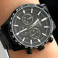 Мужские японские часы Seiko Conceptual Series Sports SSB415P1 c хронографомХронографФункция позволяет измерять отрезки времени с особой точностью: часы, минуты, секунды. Верным признаком хронографа является наличие на циферблате 3 дополнительных окошек-счётчиков., кварцевый механизм с высокой точностью. Сапфировое стеклоСапфировое стеклоПрочный и надёжный материал из кристалла сапфира синтетического происхождения, характеризующийся особой твёрдостью и устойчивостью к царапинам и повреждениям., устойчивое к появлению царапин, обладающее высокой прозрачностью. Класс водозащиты: 100 метров, позволит плавать, нырять и заниматься другими водными видами спорта. Корпус и браслет часов изготовлен из сталис PVD-покрытиемPVDУльтратонкое покрытие наносится в технике вакуумного напыления, сочетает в себе нитрид титана особой прочности со слоем золота или оксида хрома. Несёт в себе декоративную или защитную функцию.. Неподвижный безельБезельВнешний ободок, закрепляющий стекло. В спортивных часах так называется поворотное кольцо с делениями на циферблате, выполняет роль таймера – замеряет отрезки времени на шкале. Неподвижный безель – элемент декора. Однонаправленно вращающийся безель на дайверских часах позволяет фиксировать моменты погружения и выныривания на поверхность. со шкалой тахиметраТахиметрРазмеченная шкала, располагается на ободке или безеле часов. Тахиметр позволяет рассчитать скорость на определённом участке пути, расстояние измеряется в километрах или милях.. Стрелки и метки с люминесцентным покрытиемЛюминесцентное покрытиеПозволяет считывать показания времени в темноте. Производители наносят на стрелки, часовые индексы, безель или поверхность циферблата светонакопительный состав, дающий холодное свечение.. Браслет на раскладной застёжкеРаскладная застёжкаТакой тип застёжки используется только на браслетах из металла. Она никогда не раскрывается полностью, происходит разделение на 2 и более частей. Раскладывающая застёжка снизит вероятность потери часов к минимуму. с кнопками. СекундомерСекундомерСекундоме́р — прибор, способный измерять интервалы времени с точностью до долей секунды.. Окошко даты находится в положении между 4 и 5 часов.