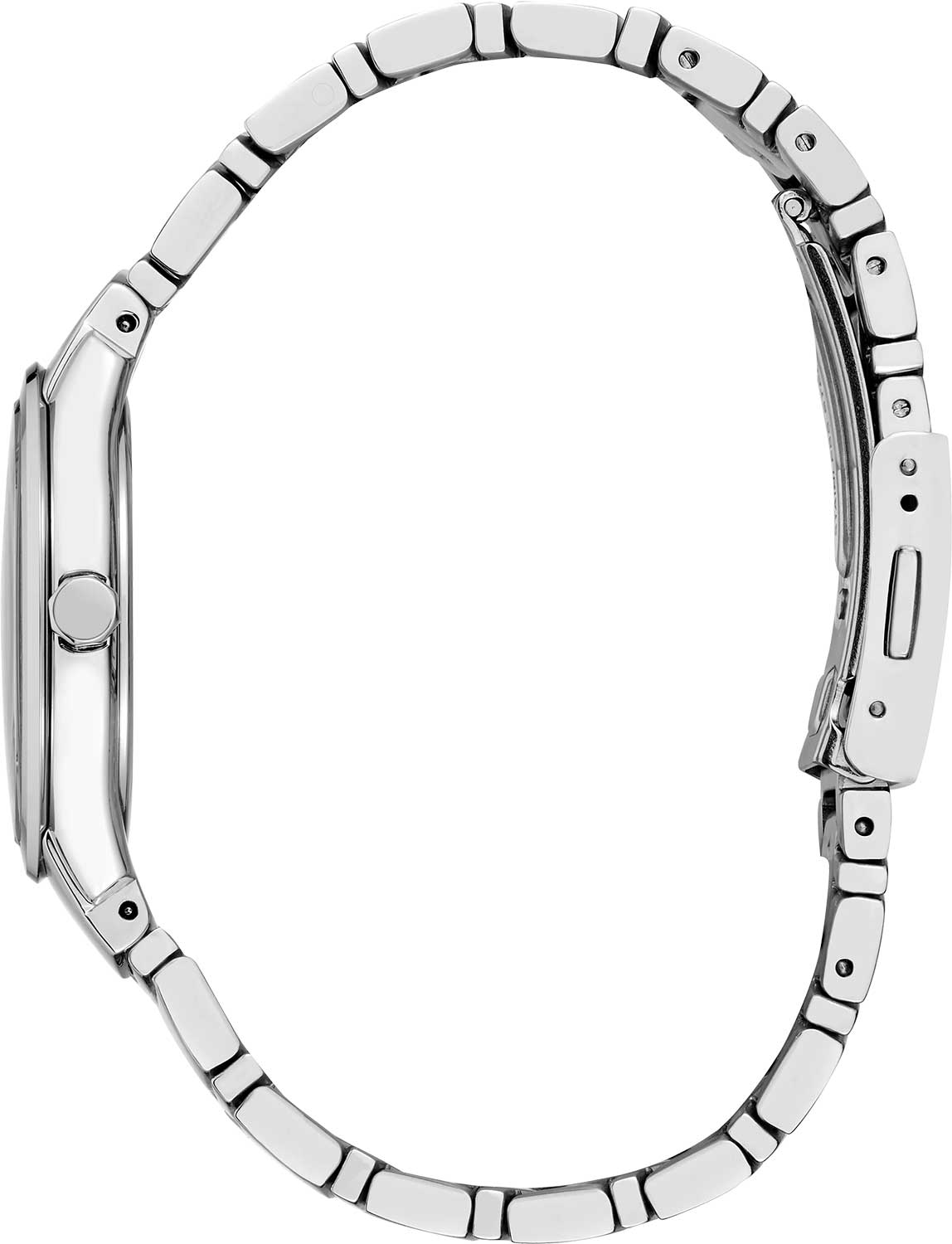 Женские японские часы Seiko Discover More SUR549P1 c кварцевымом механизм с высокой точностью с калибром 6N01. Минеральное стеклоМинеральное стеклоМинеральное стекло представляет собой искусственно выращенный минерал кварца. Такое стекло отличается особой устойчивостью к повреждениям и царапинам. Уступает по некоторым качествам сапфировому стеклу. выпуклое повышенной прочности Hardlex, устойчивое к появлению царапин, обладающее высокой прозрачностью. Водозащита до 5 ATM позволяет не снимать часы при дожде, мытье рук или случайных брызгах. Корпус и браслет часов изготовлен из нержавеющей стали. Голубой циферблат с метками в виде штрихов. Браслет с раскладной застёжкойРаскладная застёжкаТакой тип застёжки используется только на браслетах из металла. Она никогда не раскрывается полностью, происходит разделение на 2 и более частей. Раскладывающая застёжка снизит вероятность потери часов к минимуму. с фиксатором. Seiko — это гармония изящного дизайна и технологичной надёжности, компактный и стильный выбор для повседневной классики.