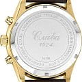 Российские механические часы-хронографХронографФункция позволяет измерять отрезки времени с особой точностью: часы, минуты, секунды. Верным признаком хронографа является наличие на циферблате 3 дополнительных окошек-счётчиков. с секундомеромСекундомерСекундоме́р — прибор, способный измерять интервалы времени с точностью до долей секунды. Слава 1889141/300-4617, созданные для тех, кто ценит стиль и надежность. Эти часы сочетают в себе классический дизайн и современные технологии, предлагая исключительную функциональность и элегантность. Часы оснащены механизмом Peacock 4617 с автоподзаводом, а запас хода достигает 45 часов, что делает их идеальным выбором для повседневного использования. Корпус часов диаметром 42 мм выполнен из стали с изысканным золотистым IP-покрытиемIP-покрытиеМетод ионного напыления. Демонстрирует повышенную устойчивость к истиранию, окислению и химическим веществам. Под воздействием высокого давления и температуры около 1500°C молекулы металла надёжно соединяются с частицами корпуса часов.. Золотистый циферблат украшен изображением герба Российской Федерации и дополнен арабскими цифрами, что обеспечивает отличную читаемость. Стрелки с люминесцентным покрытиемЛюминесцентное покрытиеПозволяет считывать показания времени в темноте. Производители наносят на стрелки, часовые индексы, безель или поверхность циферблата светонакопительный состав, дающий холодное свечение. облегчают чтение времени даже в условиях слабого освещения. Окошко даты расположено в положении 6 часов, добавляя дополнительную практичность. Защиту обеспечивает сапфировое стеклоСапфировое стеклоПрочный и надёжный материал из кристалла сапфира синтетического происхождения, характеризующийся особой твёрдостью и устойчивостью к царапинам и повреждениям., устойчивое к царапинам, и водозащита до 50WR, что позволяет носить часы в различных условиях. Рифленая заводная головка и кожаный ремешок с классической застежкой завершают образ, придавая часам дополнительную элегантность и комфорт.