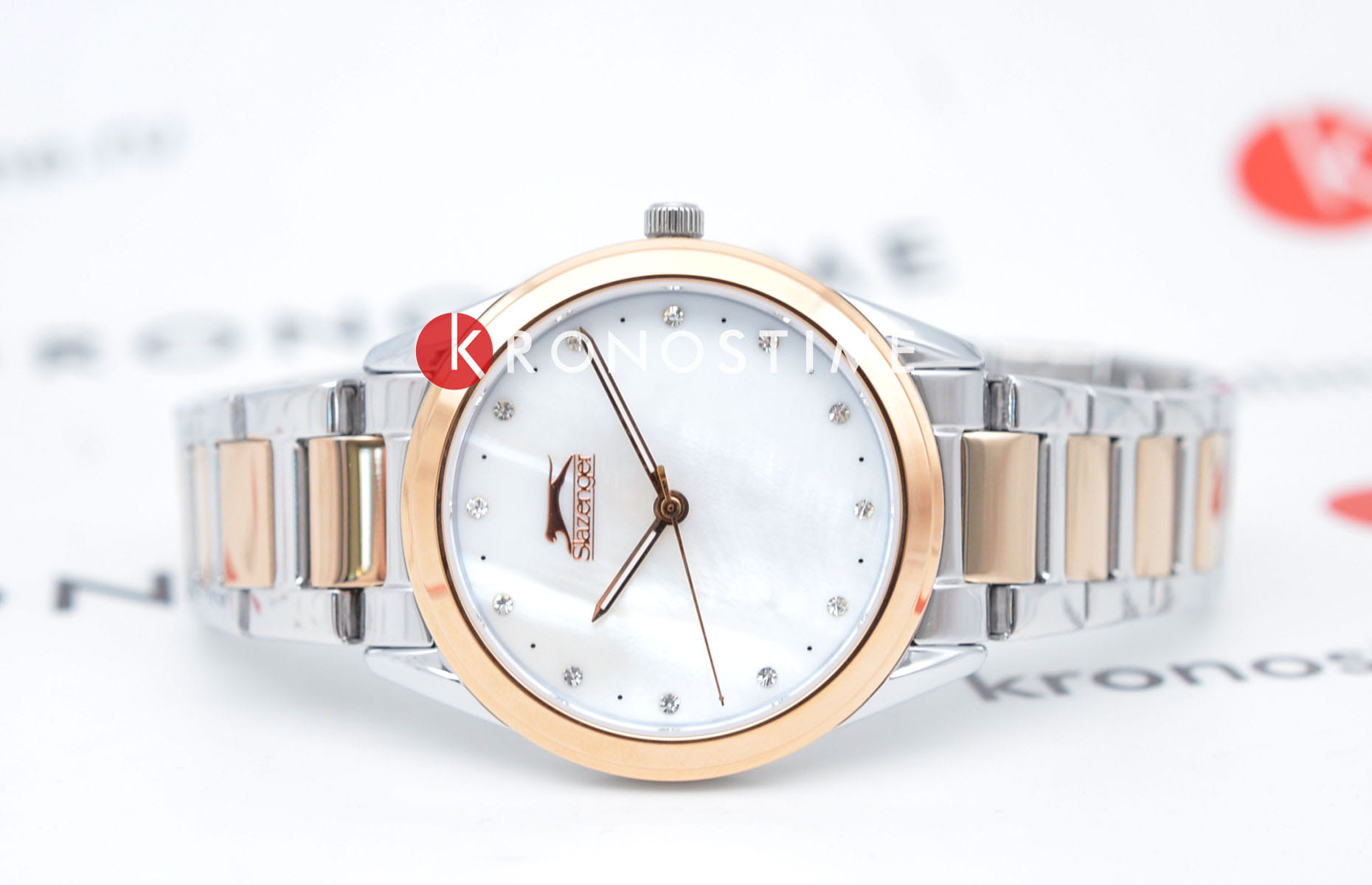 Женские наручные часы Slazenger SL.09.2013.3.05 из коллекции, сочетающей элегантность и практичность в классическом дизайне. Модель обладает круглым корпусом диаметром 35 мм, изготовленным из суперметалла. БезельБезельВнешний ободок, закрепляющий стекло. В спортивных часах так называется поворотное кольцо с делениями на циферблате, выполняет роль таймера – замеряет отрезки времени на шкале. Неподвижный безель – элемент декора. Однонаправленно вращающийся безель на дайверских часах позволяет фиксировать моменты погружения и выныривания на поверхность. с IP-покрытиемIP-покрытиеМетод ионного напыления. Демонстрирует повышенную устойчивость к истиранию, окислению и химическим веществам. Под воздействием высокого давления и температуры около 1500°C молекулы металла надёжно соединяются с частицами корпуса часов., что обеспечивает высокую устойчивость к внешним воздействиям. Циферблат украшен кристаллами в виде фианитов, добавляя модели особую роскошь и шарм. Для защиты используется минеральное стеклоМинеральное стеклоМинеральное стекло представляет собой искусственно выращенный минерал кварца. Такое стекло отличается особой устойчивостью к повреждениям и царапинам. Уступает по некоторым качествам сапфировому стеклу., обеспечивающее надежную защиту от царапин. Часы комплектуются браслетом из суперметалла с двухтоновым покрытием и раскладной застежкойРаскладной замокДанный вариант застежки используется только на часах с металлическим браслетом. Отличительная особенность такого крепления в том, что длина браслета становится универсальной и вы можете самостоятельно отрегулировать нужный вам размер – застежка просто двигается по браслету часов., гарантирующей комфортное ношение. Модель работает на кварцевом механизме, что обеспечивает высокую точность хода времени. Водонепроницаемость часов составляет 3 атмосферы (30 метров), подходящую для ежедневного использования, но не рекомендуется для плавания или дайвинга.