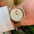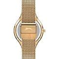 Женские наручные часы Slazenger SL.09.2015.3.03 сочетают в себе элегантный дизайн и надежность современных технологий. Модель обладает круглым корпусом диаметром 35 мм, изготовленным из суперметалла с IP-покрытиемIP-покрытиеМетод ионного напыления. Демонстрирует повышенную устойчивость к истиранию, окислению и химическим веществам. Под воздействием высокого давления и температуры около 1500°C молекулы металла надёжно соединяются с частицами корпуса часов., что обеспечивает высокую устойчивость к внешним воздействиям. Браслет выполнен в виде миланского плетения из того же материала с раскладным замкомРаскладной замокДанный вариант застежки используется только на часах с металлическим браслетом. Отличительная особенность такого крепления в том, что длина браслета становится универсальной и вы можете самостоятельно отрегулировать нужный вам размер – застежка просто двигается по браслету часов., гарантируя комфортное ношение и стильный внешний вид. Циферблат украшен индексами и кристаллами, а также оснащен тремя стрелками для показания часов, минут и секунд. Для защиты применяется минеральное стеклоМинеральное стеклоМинеральное стекло представляет собой искусственно выращенный минерал кварца. Такое стекло отличается особой устойчивостью к повреждениям и царапинам. Уступает по некоторым качествам сапфировому стеклу., обеспечивающее прочную защиту от царапин. Часы работают на японском кварцевом механизме, что гарантирует точное время без необходимости подзаводки. Водонепроницаемость часов достигает 5 атмосфер (50 метров), что позволяет использовать их при контакте с водой, например, во время мытья рук или попадания брызг, однако не рекомендуется для плавания.