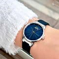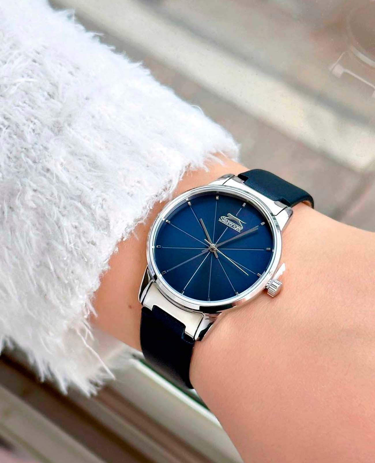 Женские наручные часы Slazenger SL.09.2031.3.02 сочетают в себе классический дизайн и надежность современных технологий. Модель обладает круглым корпусом диаметром 34 мм, изготовленным из высококачественной стали с серебристым покрытием, что обеспечивает высокую устойчивость к внешним воздействиям. Браслет выполнен из натуральной кожи синего цвета с классической застежкой, гарантирующей комфортное ношение. Для защиты применяется минеральное стеклоМинеральное стеклоМинеральное стекло представляет собой искусственно выращенный минерал кварца. Такое стекло отличается особой устойчивостью к повреждениям и царапинам. Уступает по некоторым качествам сапфировому стеклу., обеспечивающее прочную защиту от царапин. Часы работают на японском кварцевом механизме, что гарантирует точное время без необходимости подзаводки. Водонепроницаемость часов достигает 3 атмосфер (30 метров), что позволяет использовать их при легком контакте с водой, например, во время мытья рук, но не рекомендуется для плавания.
