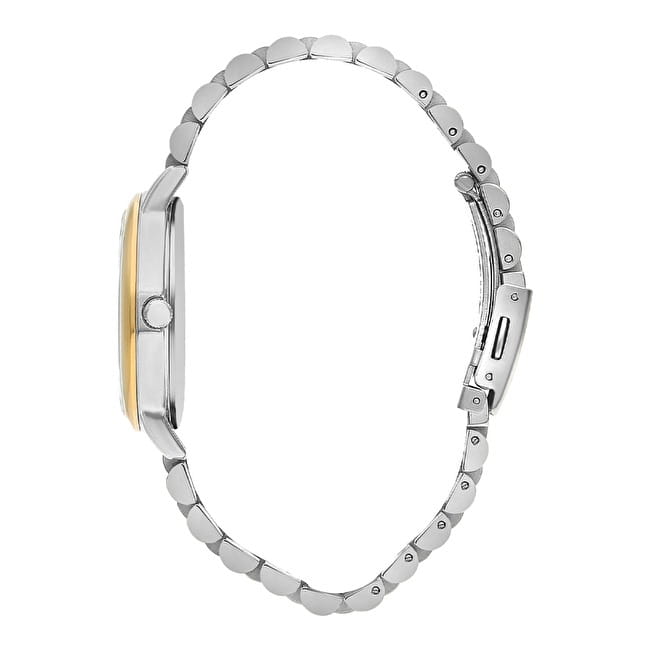 Часы Slazenger SL.09.2050.4.05 — это элегантное сочетание стиля и функциональности, созданное специально для женщин. Их изысканный серебристый циферблат и корпус из суперметалла придают часам современный и утонченный вид, а безельБезельВнешний ободок, закрепляющий стекло. В спортивных часах так называется поворотное кольцо с делениями на циферблате, выполняет роль таймера – замеряет отрезки времени на шкале. Неподвижный безель – элемент декора. Однонаправленно вращающийся безель на дайверских часах позволяет фиксировать моменты погружения и выныривания на поверхность. из суперметалла с IP-покрытиемIP-покрытиеМетод ионного напыления. Демонстрирует повышенную устойчивость к истиранию, окислению и химическим веществам. Под воздействием высокого давления и температуры около 1500°C молекулы металла надёжно соединяются с частицами корпуса часов. отлично его дополняет. Внутри скрыт надежный кварцевый механизм, который гарантирует точность и долговечность. Минеральное стеклоМинеральное стеклоМинеральное стекло представляет собой искусственно выращенный минерал кварца. Такое стекло отличается особой устойчивостью к повреждениям и царапинам. Уступает по некоторым качествам сапфировому стеклу. защищает часы от царапин, а украшение из фианитов добавляет изысканный акцент. Люминесцентное покрытиеЛюминесцентное покрытиеПозволяет считывать показания времени в темноте. Производители наносят на стрелки, часовые индексы, безель или поверхность циферблата светонакопительный состав, дающий холодное свечение. на стрелках позволяют легко считывать время даже в темноте. Функциональность часов дополнена 24-часовым указателем времени, календарем даты и дня недели. Браслет из суперметалла с частичным IP-покрытиемIP-покрытиеМетод ионного напыления. Демонстрирует повышенную устойчивость к истиранию, окислению и химическим веществам. Под воздействием высокого давления и температуры около 1500°C молекулы металла надёжно соединяются с частицами корпуса часов. и раскладной застёжкойРаскладная застёжкаТакой тип застёжки используется только на браслетах из металла. Она никогда не раскрывается полностью, происходит разделение на 2 и более частей. Раскладывающая застёжка снизит вероятность потери часов к минимуму. подчеркивает женственность дизайна и обеспечивает комфорт в носке. Диаметр корпуса составляет 35 мм, а толщина — 9 мм, что делает их идеальным аксессуаром для любой стильной женщины. Водозащита уровня 3 ATM позволяет не беспокоиться о случайных брызгах.