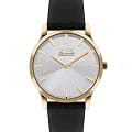 Женские наручные часы Slazenger SL.09.2068.3.05 сочетают в себе классический дизайн и надежность современных технологий. Модель обладает круглым корпусом диаметром 36 мм, изготовленным из суперметалла с золотистым IP-покрытиемIP-покрытиеМетод ионного напыления. Демонстрирует повышенную устойчивость к истиранию, окислению и химическим веществам. Под воздействием высокого давления и температуры около 1500°C молекулы металла надёжно соединяются с частицами корпуса часов., что обеспечивает высокую устойчивость к внешним воздействиям. Циферблат покрыт минеральным стекломМинеральное стеклоМинеральное стекло представляет собой искусственно выращенный минерал кварца. Такое стекло отличается особой устойчивостью к повреждениям и царапинам. Уступает по некоторым качествам сапфировому стеклу., обеспечивающим прочную защиту от царапин. Часы работают на японском кварцевом механизме, что гарантирует точное время без необходимости подзаводки. Водонепроницаемость часов достигает 5 атмосфер (50 метров), что позволяет использовать их при легком контакте с водой, например, во время мытья рук, но не рекомендуется для плавания. Браслет выполнен из натуральной кожи черного цвета с классической застежкой, гарантирующей комфортное ношение.