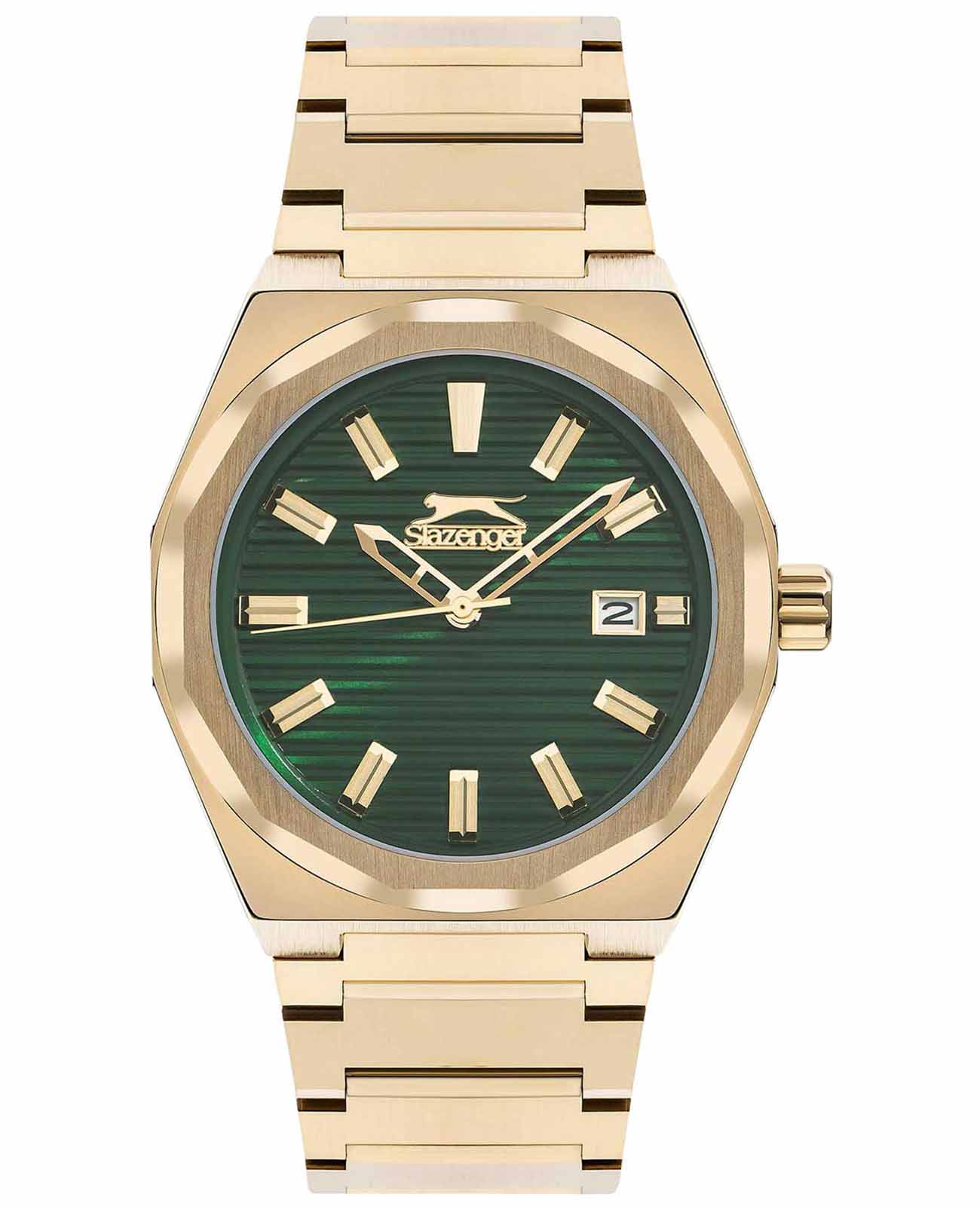 Часы Slazenger SL.09.2143.1.03 воплощают в себе элегантность и практичность, идеально подходящие для современных мужчин. Их зеленый циферблат защищен минеральным стекломМинеральное стеклоМинеральное стекло представляет собой искусственно выращенный минерал кварца. Такое стекло отличается особой устойчивостью к повреждениям и царапинам. Уступает по некоторым качествам сапфировому стеклу. и заключен в золотистый корпус диаметром 41,5 мм, который изготовлен из прочного суперметалла с IP-покрытиемIP-покрытиеМетод ионного напыления. Демонстрирует повышенную устойчивость к истиранию, окислению и химическим веществам. Под воздействием высокого давления и температуры около 1500°C молекулы металла надёжно соединяются с частицами корпуса часов.. Окошко даты расположено в положении 3 часов. Надежный кварцевый механизм обеспечивает точность, а водозащита 5 ATM делает их устойчивыми к воздействию воды. Браслет из суперметалла с IP-покрытиемIP-покрытиеМетод ионного напыления. Демонстрирует повышенную устойчивость к истиранию, окислению и химическим веществам. Под воздействием высокого давления и температуры около 1500°C молекулы металла надёжно соединяются с частицами корпуса часов. имеет раскладную застёжкуРаскладная застёжкаТакой тип застёжки используется только на браслетах из металла. Она никогда не раскрывается полностью, происходит разделение на 2 и более частей. Раскладывающая застёжка снизит вероятность потери часов к минимуму., что подчеркивает современный стиль и позволяет легко снимать часы. Ширина браслета 22-26 мм.
