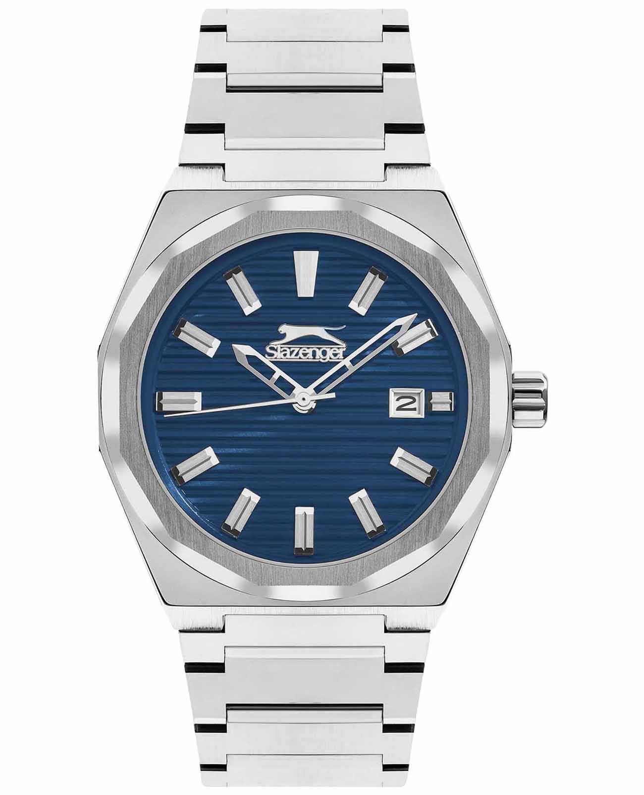 Часы Slazenger SL.09.2143.1.05  воплощают в себе элегантность и практичность, идеально подходящие для современных мужчин. Их синий циферблат защищен минеральным стекломМинеральное стеклоМинеральное стекло представляет собой искусственно выращенный минерал кварца. Такое стекло отличается особой устойчивостью к повреждениям и царапинам. Уступает по некоторым качествам сапфировому стеклу. и заключен в серебристый корпус диаметром 41,5 мм, который изготовлен из прочного суперметалла. Окошко даты расположено в положении 3 часов. Надежный кварцевый механизм обеспечивает точность, а водозащита 5 ATM делает их устойчивыми к воздействию воды. Браслет из суперметалла имеет раскладную застёжкуРаскладная застёжкаТакой тип застёжки используется только на браслетах из металла. Она никогда не раскрывается полностью, происходит разделение на 2 и более частей. Раскладывающая застёжка снизит вероятность потери часов к минимуму., что подчеркивает современный стиль и позволяет легко снимать часы. Ширина браслета 22-26 мм.