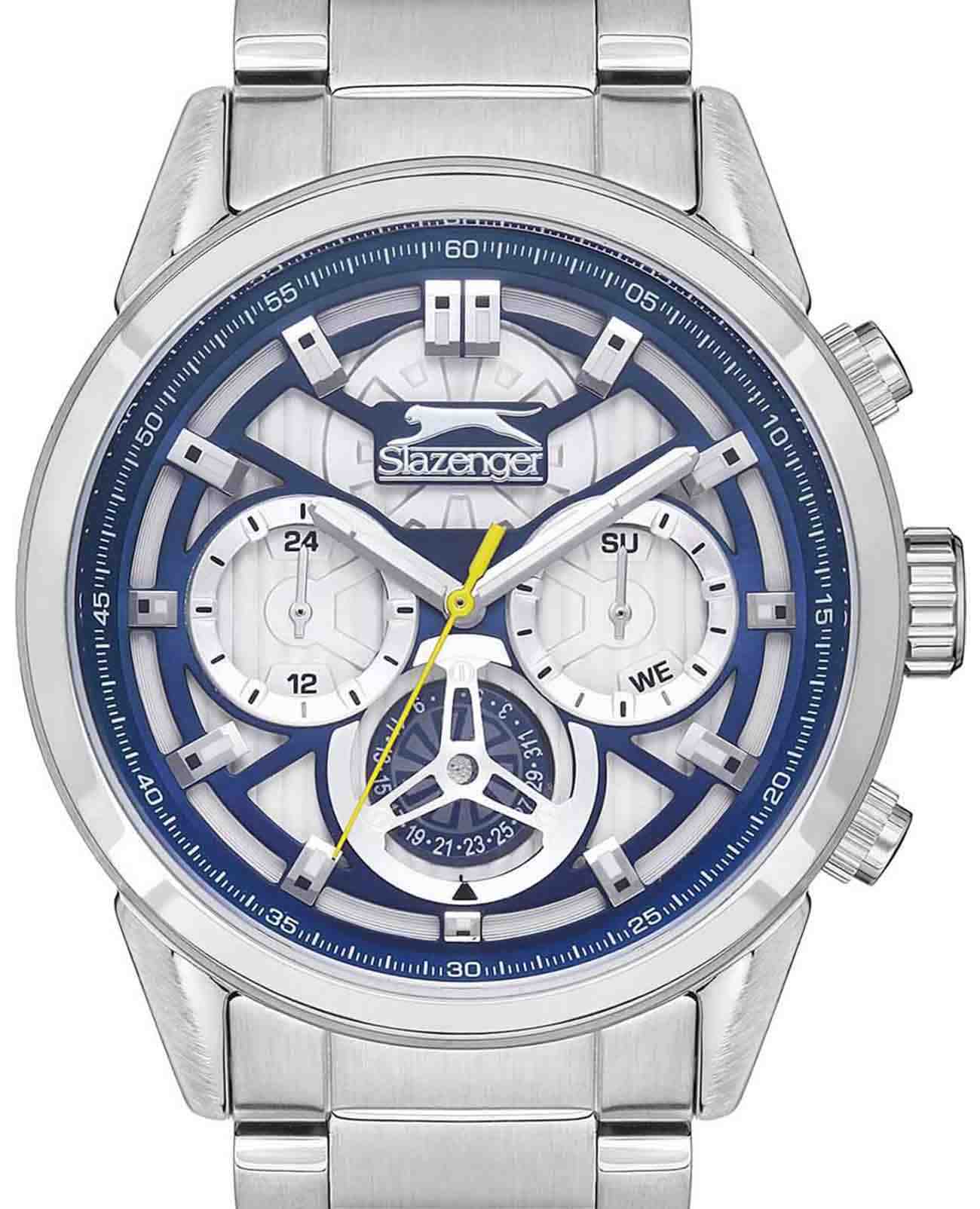 Стильные наручные часы Slazenger SL.09.2157.2.04 станут идеальным дополнением к вашему современному образу. Эти часы оснащены надежным кварцевым механизмом, который обеспечивает точность и долговечность. Круглый корпус выполнен из суперматериала, обладающего высокой прочностью. Серебристый циферблат с метками в виде штрихов придает часам элегантный и сдержанный вид, а логотип бренда подчеркивает их принадлежность к качественной продукции. Часы предлагают возможность отображения времени как в 12-часовом, так и в 24-часовом формате, что делает их удобными для различных ситуаций. Дополнительные циферблаты показывают дату и день недели, что добавляет функциональности. Минеральное стеклоМинеральное стеклоМинеральное стекло представляет собой искусственно выращенный минерал кварца. Такое стекло отличается особой устойчивостью к повреждениям и царапинам. Уступает по некоторым качествам сапфировому стеклу. защищает циферблат от царапин и повреждений, сохраняя его привлекательный вид на долгие годы. Люминесцентное покрытиеЛюминесцентное покрытиеПозволяет считывать показания времени в темноте. Производители наносят на стрелки, часовые индексы, безель или поверхность циферблата светонакопительный состав, дающий холодное свечение. на стрелках обеспечивает отличную видимость в темноте. Металлический браслет с раскладной застёжкойРаскладная застёжкаТакой тип застёжки используется только на браслетах из металла. Она никогда не раскрывается полностью, происходит разделение на 2 и более частей. Раскладывающая застёжка снизит вероятность потери часов к минимуму. обеспечивает комфортную и надежную фиксацию на запястье. Водозащита 50WR позволяет не беспокоиться о случайных брызгах или дождевых каплях. Эти часы гармонично сочетают в себе стиль и практичность, становясь незаменимым аксессуаром для тех, кто ценит качество и современный дизайн.