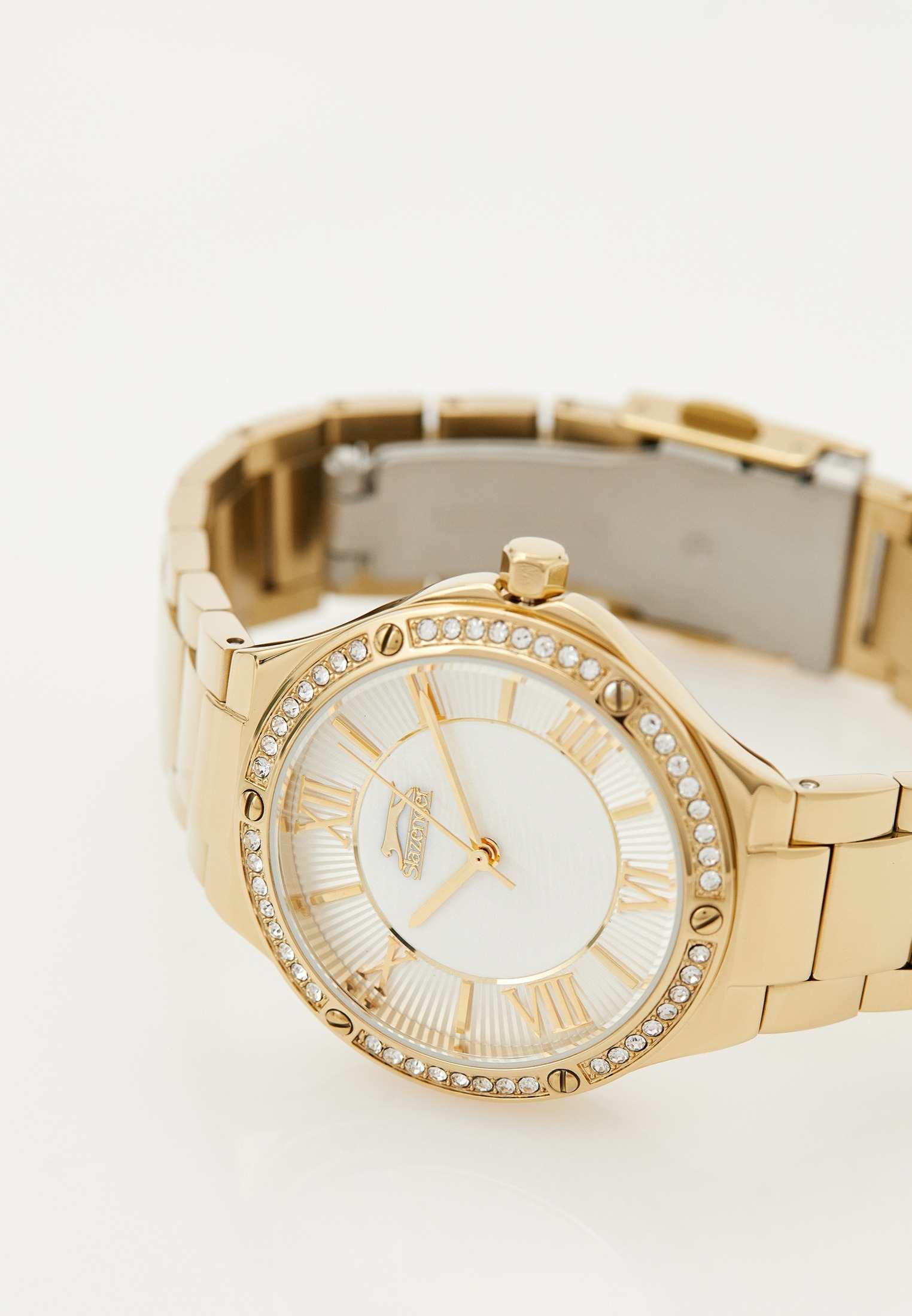 Часы Slazenger SL.09.2225.3.05 — это изысканный аксессуар, который подчеркнёт ваш стиль и индивидуальность. Модель оснащена надёжным кварцевым механизмом, обеспечивающим точность хода. Корпус из прочного металла с золотистым IP-покрытиемIP-покрытиеМетод ионного напыления. Демонстрирует повышенную устойчивость к истиранию, окислению и химическим веществам. Под воздействием высокого давления и температуры около 1500°C молекулы металла надёжно соединяются с частицами корпуса часов. диаметром 35 мм, а безельБезельВнешний ободок, закрепляющий стекло. В спортивных часах так называется поворотное кольцо с делениями на циферблате, выполняет роль таймера – замеряет отрезки времени на шкале. Неподвижный безель – элемент декора. Однонаправленно вращающийся безель на дайверских часах позволяет фиксировать моменты погружения и выныривания на поверхность. украшен сияющими кристаллами. Перламутровый циферблат придаёт часам особый шарм. Металлический браслет с золотистым IP-покрытиемIP-покрытиеМетод ионного напыления. Демонстрирует повышенную устойчивость к истиранию, окислению и химическим веществам. Под воздействием высокого давления и температуры около 1500°C молекулы металла надёжно соединяются с частицами корпуса часов. с удобной раскладной застёжкойРаскладная застёжкаТакой тип застёжки используется только на браслетах из металла. Она никогда не раскрывается полностью, происходит разделение на 2 и более частей. Раскладывающая застёжка снизит вероятность потери часов к минимуму. гармонично дополняет изящный дизайн. Минеральное стеклоМинеральное стеклоМинеральное стекло представляет собой искусственно выращенный минерал кварца. Такое стекло отличается особой устойчивостью к повреждениям и царапинам. Уступает по некоторым качествам сапфировому стеклу. защищает циферблат от царапин, а водозащита уровня WR 30 позволяет не беспокоиться о случайных каплях воды. Заводная головка оснащена специальной защитой. Эти часы станут прекрасным выбором для тех, кто ценит сочетание элегантности и функциональности.