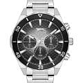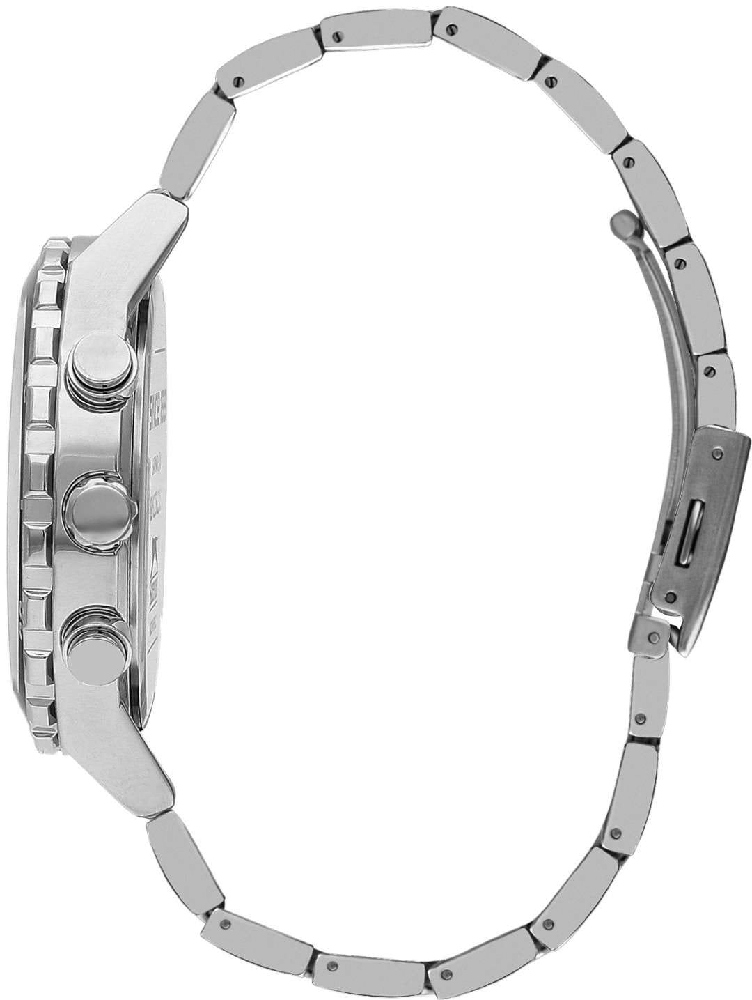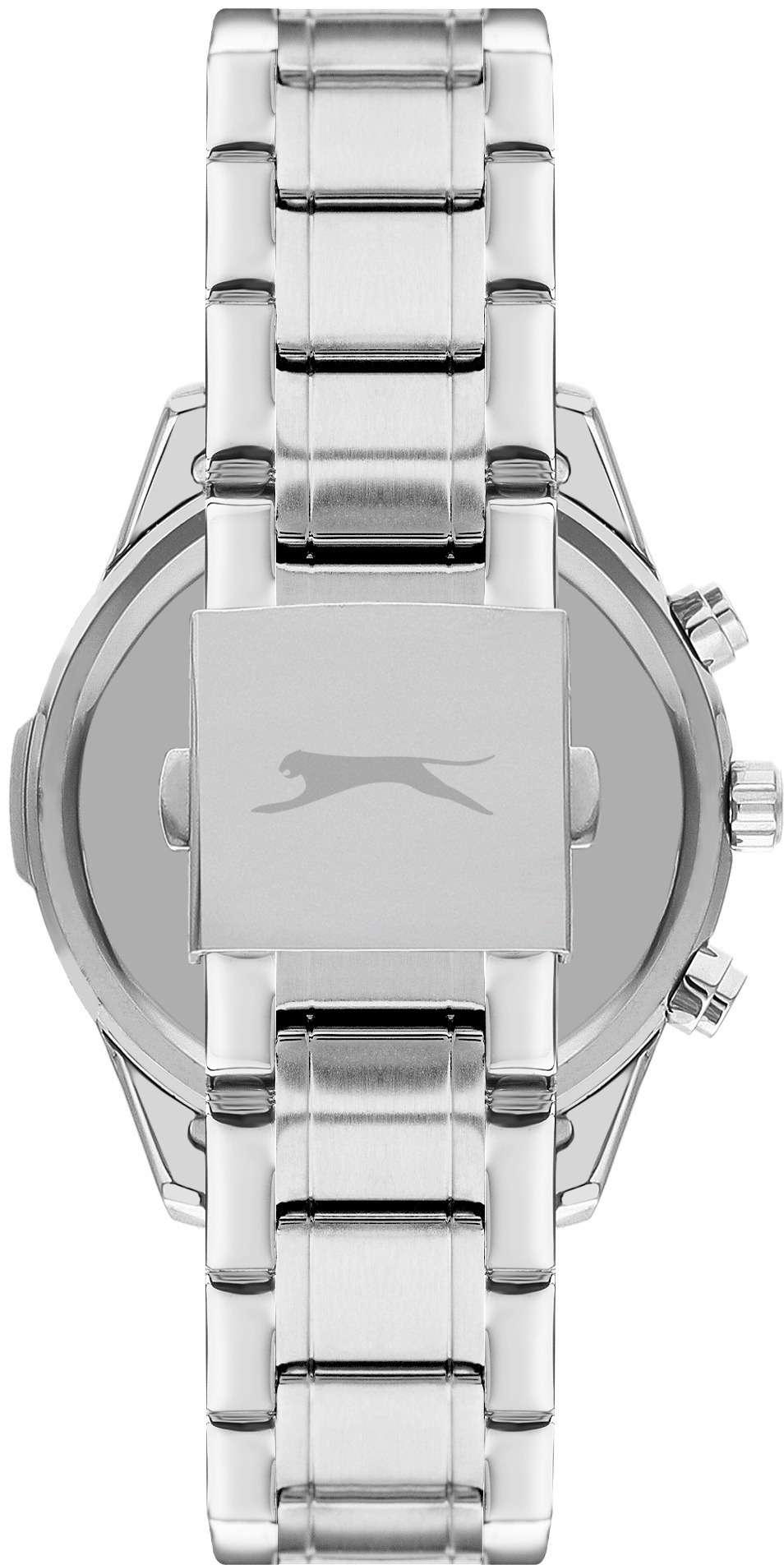 Часы Slazenger SL.09.2236.2.01 — это стильная и надежная модель, которая станет отличным выбором для активного современного мужчины. Крупный корпус диаметром 46 мм выполнен из прочного металла, а серебристый металлический браслет оснащён удобной раскладной застёжкойРаскладная застёжкаТакой тип застёжки используется только на браслетах из металла. Она никогда не раскрывается полностью, происходит разделение на 2 и более частей. Раскладывающая застёжка снизит вероятность потери часов к минимуму., что обеспечивает комфорт при повседневном ношении. На безельБезельВнешний ободок, закрепляющий стекло. В спортивных часах так называется поворотное кольцо с делениями на циферблате, выполняет роль таймера – замеряет отрезки времени на шкале. Неподвижный безель – элемент декора. Однонаправленно вращающийся безель на дайверских часах позволяет фиксировать моменты погружения и выныривания на поверхность. нанесено черное IP-покрытиеIP-покрытиеМетод ионного напыления. Демонстрирует повышенную устойчивость к истиранию, окислению и химическим веществам. Под воздействием высокого давления и температуры около 1500°C молекулы металла надёжно соединяются с частицами корпуса часов.. Минеральное стеклоМинеральное стеклоМинеральное стекло представляет собой искусственно выращенный минерал кварца. Такое стекло отличается особой устойчивостью к повреждениям и царапинам. Уступает по некоторым качествам сапфировому стеклу. защищает текстурированный черно-белый циферблат с градиентом от случайных царапин, а водозащита уровня WR 50 позволяет не переживать о попадании влаги при контакте с водой. На циферблате расположены дополнительные малые циферблаты с отображением даты, дня недели и времени в 24-часовом формате, что делает использование часов максимально функциональным. Для удобства использования в темное время суток предусмотрено люминесцентное покрытиеЛюминесцентное покрытиеПозволяет считывать показания времени в темноте. Производители наносят на стрелки, часовые индексы, безель или поверхность циферблата светонакопительный состав, дающий холодное свечение. стрелок. Толщина корпуса составляет 13 мм, вес часов — 152 грамма.