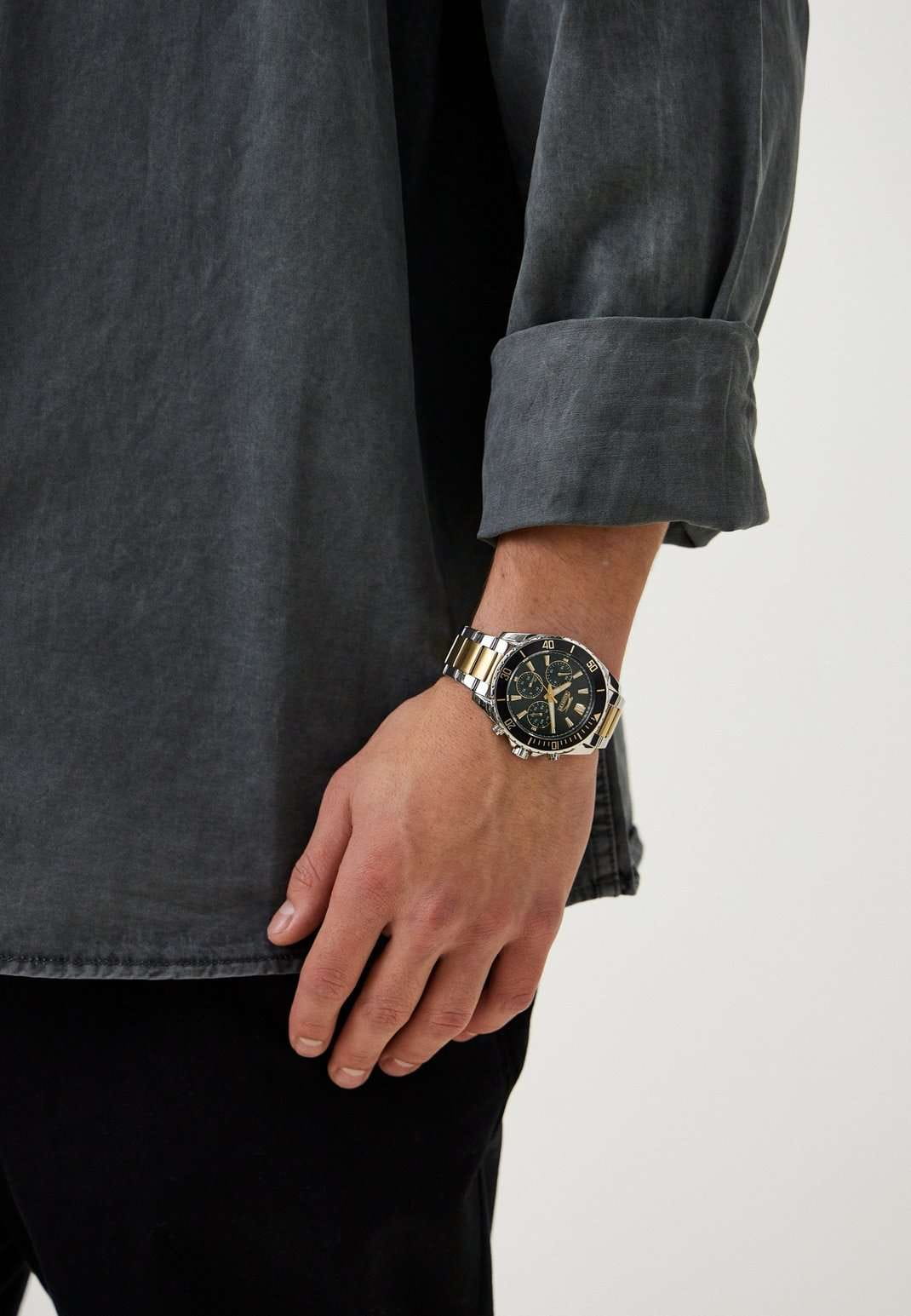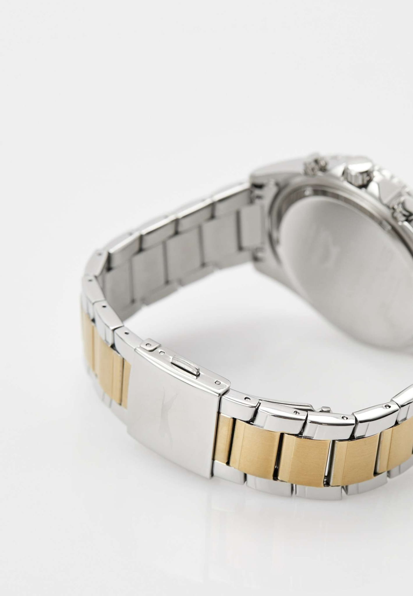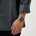 Часы Slazenger SL.09.2273.2.05 – стильный и функциональный аксессуар, который станет достойным дополнением к вашему образу. Модель оснащена надежным кварцевым механизмом, заключенным в корпус из инновационного суперметалла – прочного сплава на основе меди с пониженным содержанием цинка и никеля и специальным покрытием, устойчивым к износу. На безельБезельВнешний ободок, закрепляющий стекло. В спортивных часах так называется поворотное кольцо с делениями на циферблате, выполняет роль таймера – замеряет отрезки времени на шкале. Неподвижный безель – элемент декора. Однонаправленно вращающийся безель на дайверских часах позволяет фиксировать моменты погружения и выныривания на поверхность. нанесено черное IP-покрытиеIP-покрытиеМетод ионного напыления. Демонстрирует повышенную устойчивость к истиранию, окислению и химическим веществам. Под воздействием высокого давления и температуры около 1500°C молекулы металла надёжно соединяются с частицами корпуса часов., что придает аксессуару утончённый и универсальный внешний вид. Зеленый циферблат под минеральным стекломМинеральное стеклоМинеральное стекло представляет собой искусственно выращенный минерал кварца. Такое стекло отличается особой устойчивостью к повреждениям и царапинам. Уступает по некоторым качествам сапфировому стеклу. дополнен отдельными счетчиками: 24-часовой указатель времени, индикаторы даты и дня недели. Диаметр корпуса составляет 44 мм, а толщина – 12 мм, что обеспечивает комфортную посадку на запястье и подчёркивает современный стиль часов. Браслет из суперметалла с частичным золотистым IP-покрытиемIP-покрытиеМетод ионного напыления. Демонстрирует повышенную устойчивость к истиранию, окислению и химическим веществам. Под воздействием высокого давления и температуры около 1500°C молекулы металла надёжно соединяются с частицами корпуса часов. и с раскладной застёжкойРаскладная застёжкаТакой тип застёжки используется только на браслетах из металла. Она никогда не раскрывается полностью, происходит разделение на 2 и более частей. Раскладывающая застёжка снизит вероятность потери часов к минимуму. обеспечивает комфортную посадку. Стрелки и метки с люминесцентным покрытиемЛюминесцентное покрытиеПозволяет считывать показания времени в темноте. Производители наносят на стрелки, часовые индексы, безель или поверхность циферблата светонакопительный состав, дающий холодное свечение. удобно подсвечиваются в темноте после зарядки на свету. Водонепроницаемость 5 АТМ защищает механизм от брызг и дождя, позволяя не беспокоиться о сохранности аксессуара в повседневной жизни. Эта модель станет отличным выбором для ежедневного ношения или особых случаев и прекрасным подарком для мужчины к любому празднику.