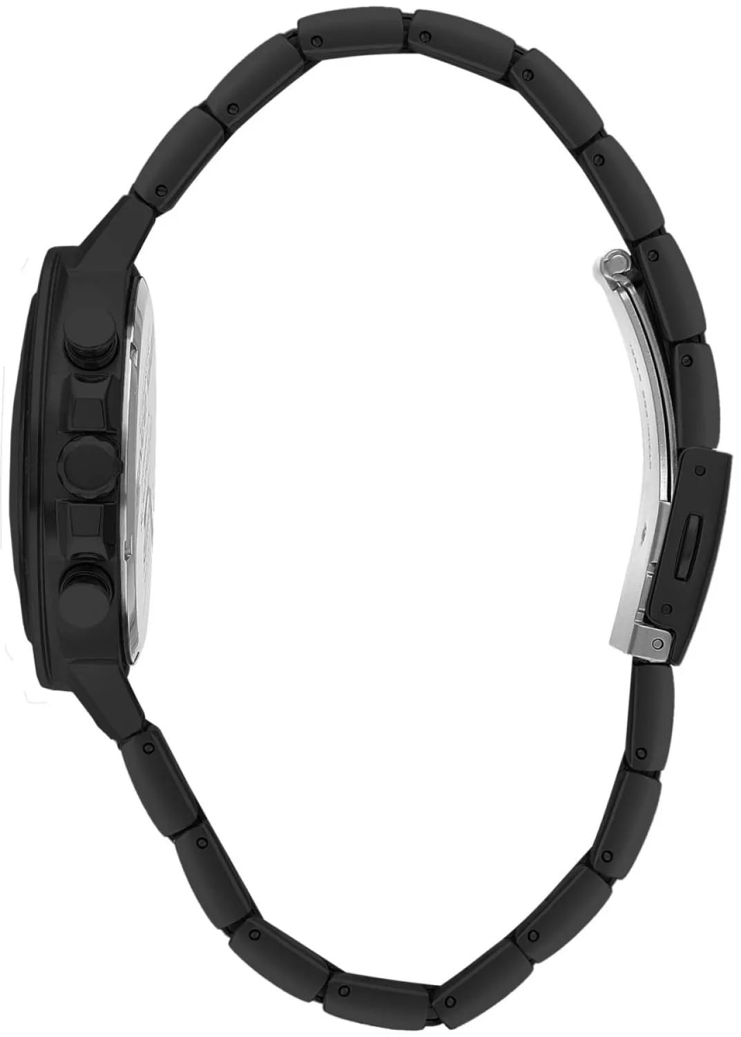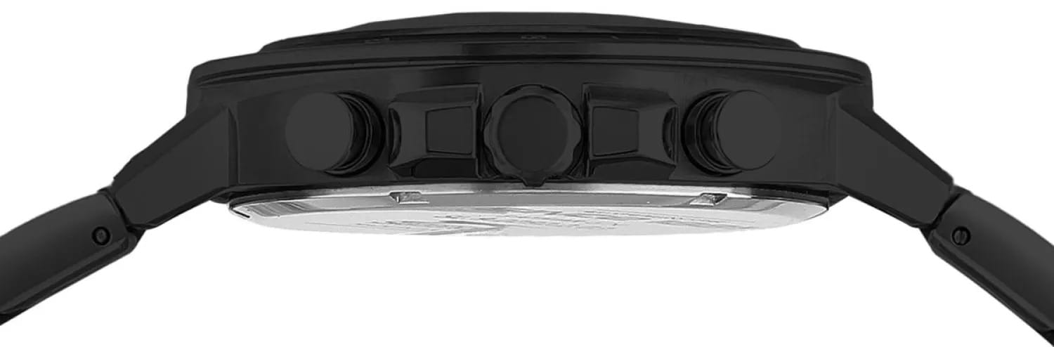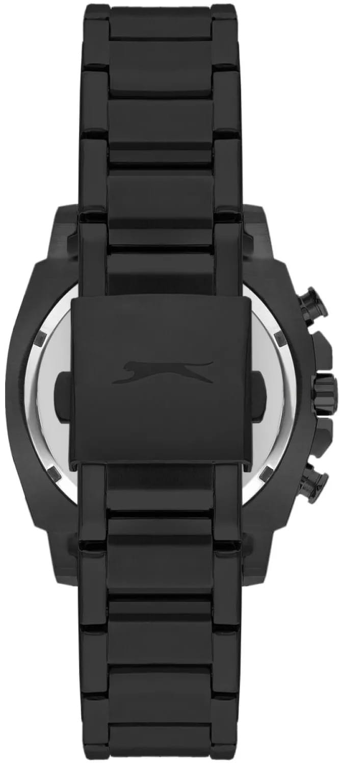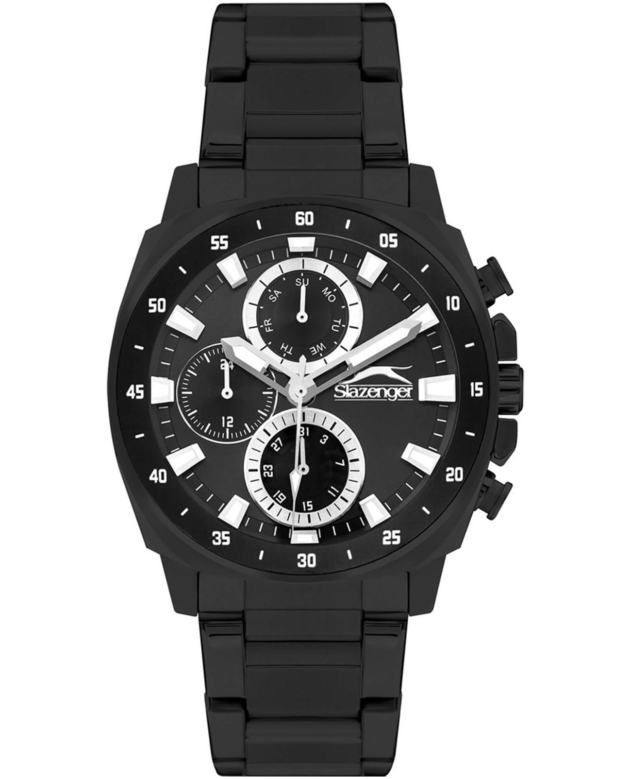 Slazenger SL.09.2292.2.02 — это стильные наручные часы, выполненные в современном дизайне и отлично подходящие для повседневного использования. Корпус диаметром 45 мм изготовлен из прочного металла с черным IP-покрытиемIP-покрытиеМетод ионного напыления. Демонстрирует повышенную устойчивость к истиранию, окислению и химическим веществам. Под воздействием высокого давления и температуры около 1500°C молекулы металла надёжно соединяются с частицами корпуса часов. и дополнен минеральным стекломМинеральное стеклоМинеральное стекло представляет собой искусственно выращенный минерал кварца. Такое стекло отличается особой устойчивостью к повреждениям и царапинам. Уступает по некоторым качествам сапфировому стеклу., которое защищает черный циферблат. Черный металлический браслет с IP-покрытиемIP-покрытиеМетод ионного напыления. Демонстрирует повышенную устойчивость к истиранию, окислению и химическим веществам. Под воздействием высокого давления и температуры около 1500°C молекулы металла надёжно соединяются с частицами корпуса часов. шириной 24 мм оснащён надежной раскладной застёжкойРаскладная застёжкаТакой тип застёжки используется только на браслетах из металла. Она никогда не раскрывается полностью, происходит разделение на 2 и более частей. Раскладывающая застёжка снизит вероятность потери часов к минимуму., которая обеспечивает комфортную посадку на руке. Кварцевый механизм гарантирует точный ход, а водозащита уровня WR 50 позволяет не снимать часы во время мытья рук или под дождём. Модель оснащена люминесцентным покрытиемЛюминесцентное покрытиеПозволяет считывать показания времени в темноте. Производители наносят на стрелки, часовые индексы, безель или поверхность циферблата светонакопительный состав, дающий холодное свечение. стрелок и меток, что облегчает считывание времени в темноте. Дополнительные малые циферблаты отображают дату, день недели и текущее время в 24-часовом формате. Часы также оснащены заводной головкой с защитой и безелемБезельВнешний ободок, закрепляющий стекло. В спортивных часах так называется поворотное кольцо с делениями на циферблате, выполняет роль таймера – замеряет отрезки времени на шкале. Неподвижный безель – элемент декора. Однонаправленно вращающийся безель на дайверских часах позволяет фиксировать моменты погружения и выныривания на поверхность. с черным IP-покрытиемIP-покрытиеМетод ионного напыления. Демонстрирует повышенную устойчивость к истиранию, окислению и химическим веществам. Под воздействием высокого давления и температуры около 1500°C молекулы металла надёжно соединяются с частицами корпуса часов. и секундной разметкой. Вес изделия составляет 173 грамма.