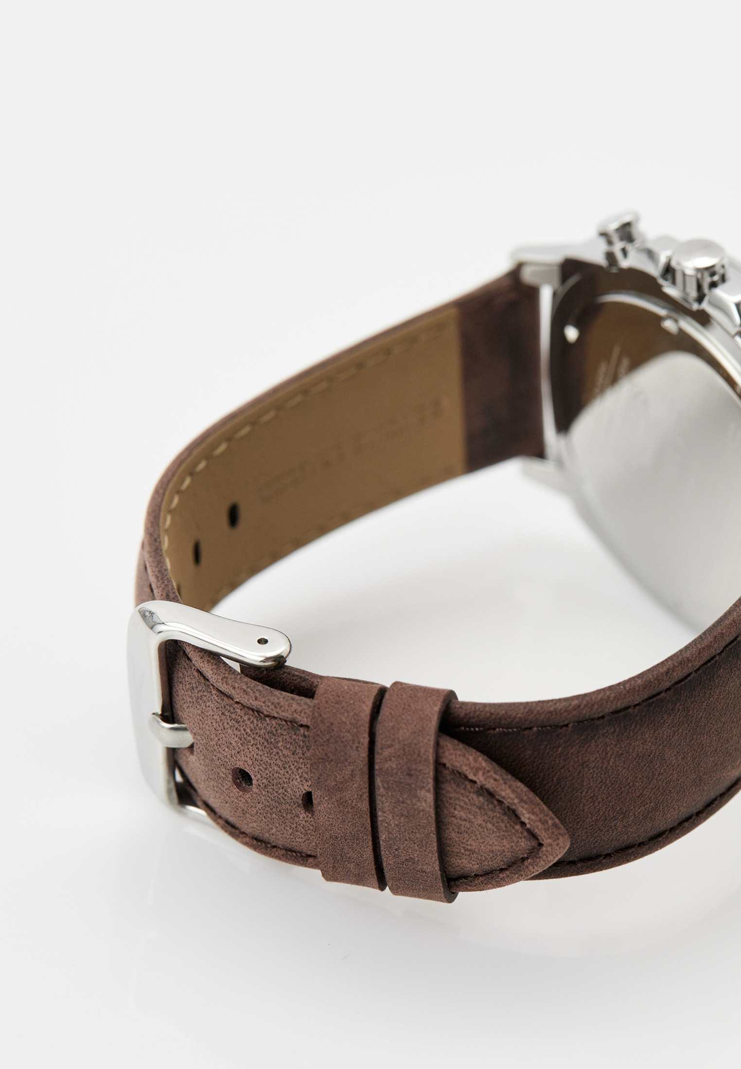 Slazenger SL.09.2293.2.06 — это стильные наручные часы, выполненные в современном дизайне и отлично подходящие для повседневного использования. Корпус диаметром 45 мм изготовлен из прочного металла и дополнен минеральным стекломМинеральное стеклоМинеральное стекло представляет собой искусственно выращенный минерал кварца. Такое стекло отличается особой устойчивостью к повреждениям и царапинам. Уступает по некоторым качествам сапфировому стеклу., которое защищает градиентный коричневый циферблат. Коричневый кожаный ремешок шириной 24 мм оснащён надежной классической застежкой, которая обеспечивает комфортную посадку на руке. Кварцевый механизм гарантирует точный ход, а водозащита уровня WR 50 позволяет не снимать часы во время мытья рук или под дождём. Модель оснащена люминесцентным покрытиемЛюминесцентное покрытиеПозволяет считывать показания времени в темноте. Производители наносят на стрелки, часовые индексы, безель или поверхность циферблата светонакопительный состав, дающий холодное свечение. стрелок и меток, что облегчает считывание времени в темноте. Дополнительные малые циферблаты отображают дату, день недели и текущее время в 24-часовом формате. Часы также оснащены заводной головкой с защитой и безелемБезельВнешний ободок, закрепляющий стекло. В спортивных часах так называется поворотное кольцо с делениями на циферблате, выполняет роль таймера – замеряет отрезки времени на шкале. Неподвижный безель – элемент декора. Однонаправленно вращающийся безель на дайверских часах позволяет фиксировать моменты погружения и выныривания на поверхность. с черным IP-покрытиемIP-покрытиеМетод ионного напыления. Демонстрирует повышенную устойчивость к истиранию, окислению и химическим веществам. Под воздействием высокого давления и температуры около 1500°C молекулы металла надёжно соединяются с частицами корпуса часов. и секундной разметкой. Вес изделия составляет 80 грамм.
