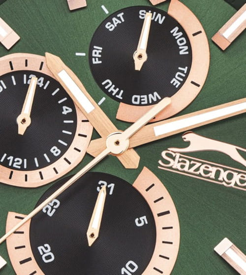 Мужские кварцевые часы Slazenger SL.09.2312.2.05 — это выразительный и функциональный аксессуар, сочетающий прочность, стиль и насыщенную комплектацию. Корпус и браслет выполнены из суперметалла с IP-покрытиемIP-покрытиеМетод ионного напыления. Демонстрирует повышенную устойчивость к истиранию, окислению и химическим веществам. Под воздействием высокого давления и температуры около 1500°C молекулы металла надёжно соединяются с частицами корпуса часов. чёрного цвета, защищён минеральным стекломМинеральное стеклоМинеральное стекло представляет собой искусственно выращенный минерал кварца. Такое стекло отличается особой устойчивостью к повреждениям и царапинам. Уступает по некоторым качествам сапфировому стеклу.. Циферблат зелёного цвета оформлен с вынесенными малыми циферблатами для индикации дня недели, даты и времени в 24-часовом формате. Стрелки и метки оснащены люминесцентным покрытиемЛюминесцентное покрытиеПозволяет считывать показания времени в темноте. Производители наносят на стрелки, часовые индексы, безель или поверхность циферблата светонакопительный состав, дающий холодное свечение., обеспечивающим хорошую читаемость в темноте. Безель и гранёная заводная головка с защитой придают модели выразительный внешний вид. Браслет фиксируется на раскладной застёжкеРаскладная застёжкаТакой тип застёжки используется только на браслетах из металла. Она никогда не раскрывается полностью, происходит разделение на 2 и более частей. Раскладывающая застёжка снизит вероятность потери часов к минимуму., обеспечивая удобство и надёжность ношения. Водонепроницаемость 50 м позволяет использовать часы в повседневных условиях, защищая от случайных брызг и капель дождя. Модель подчёркивает индивидуальность владельца и идеально подходит как для повседневного, так и для делового образа.