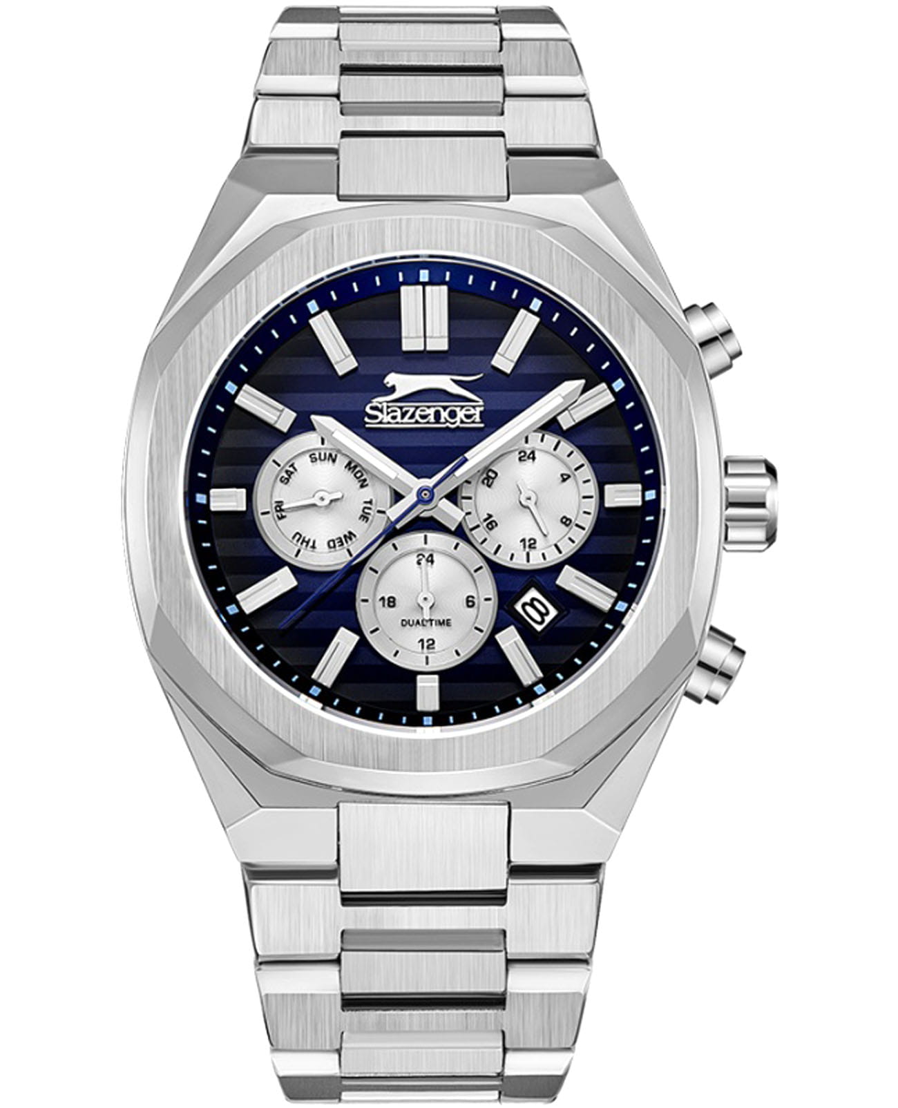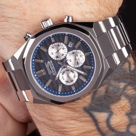 Мужские кварцевые часы Slazenger SL.09.2345.2.02 – идеальное сочетание классического дизайна и современных технологий, созданное для уверенных в себе мужчин. Корпус выполнен из суперметалла серебристого цвета, диаметром 43 мм и толщиной 12 мм, подчёркивает надежность модели и делает их идеальным аксессуаром для любой ситуации – будь то деловая встреча или повседневные выходы. Циферблат надёжно защищён минеральным стекломМинеральное стеклоМинеральное стекло представляет собой искусственно выращенный минерал кварца. Такое стекло отличается особой устойчивостью к повреждениям и царапинам. Уступает по некоторым качествам сапфировому стеклу., которое устойчиво к механическим повреждениям и сохраняет кристальную прозрачность. Браслет из суперметалла удобно облегает запястье и фиксируется с помощью раскладной застёжкиРаскладная застёжкаТакой тип застёжки используется только на браслетах из металла. Она никогда не раскрывается полностью, происходит разделение на 2 и более частей. Раскладывающая застёжка снизит вероятность потери часов к минимуму., обеспечивая надёжность и комфорт в повседневном ношении. Стрелки и метки покрыты люминесцентным покрытиемЛюминесцентное покрытиеПозволяет считывать показания времени в темноте. Производители наносят на стрелки, часовые индексы, безель или поверхность циферблата светонакопительный состав, дающий холодное свечение., обеспечивающим отличную читаемость в темноте. Эти часы станут не просто аксессуаром, а надежным спутником в любой ситуации, подчеркивая ваш безупречный вкус и деловой стиль. Окошко даты находится в положении между 4 и 5 часов. Вынесенный циферблат с 24-х часовым указателем времени. Водозащита до 50 метров позволит защитить корпус от случайных брызг или капель дождя. Функция GMTGMTОтображение времени второго часового пояса.Такая функция особенно актуальна для путешественников и бизнесменов,которые общаются с людьми из разных стран,теперь вы всегда будете знать,какой час у вашего партнёра или близкого человека. поможет отслеживать время второго часового поясаВторой часовой поясФункция, позволяющая отображать время двух часовых поясов одновременно..