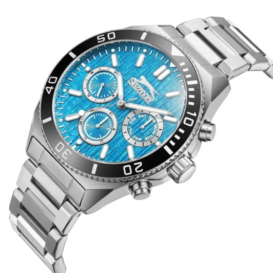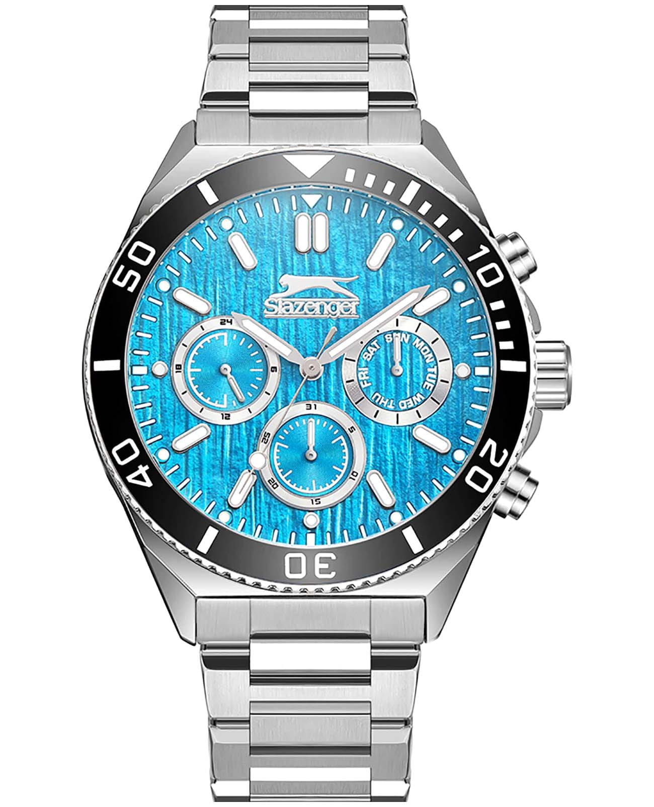 Мужские кварцевые часы Slazenger SL.09.2370.2.03 – идеальное сочетание классического дизайна и современных технологий, созданное для уверенных в себе мужчин. Корпус выполнен из суперметалла серебристого цвета, диаметром 44.5 мм и толщиной 13 мм, подчёркивает надежность модели и делает их идеальным аксессуаром для любой ситуации – будь то деловая встреча или повседневные выходы. Циферблат надёжно защищён минеральным стекломМинеральное стеклоМинеральное стекло представляет собой искусственно выращенный минерал кварца. Такое стекло отличается особой устойчивостью к повреждениям и царапинам. Уступает по некоторым качествам сапфировому стеклу., которое устойчиво к механическим повреждениям и сохраняет кристальную прозрачность. БезельБезельВнешний ободок, закрепляющий стекло. В спортивных часах так называется поворотное кольцо с делениями на циферблате, выполняет роль таймера – замеряет отрезки времени на шкале. Неподвижный безель – элемент декора. Однонаправленно вращающийся безель на дайверских часах позволяет фиксировать моменты погружения и выныривания на поверхность. с IP-покрытиемIP-покрытиеМетод ионного напыления. Демонстрирует повышенную устойчивость к истиранию, окислению и химическим веществам. Под воздействием высокого давления и температуры около 1500°C молекулы металла надёжно соединяются с частицами корпуса часов. черного цвета. Стальной браслет удобно облегает запястье и фиксируется с помощью раскладной застёжкиРаскладная застёжкаТакой тип застёжки используется только на браслетах из металла. Она никогда не раскрывается полностью, происходит разделение на 2 и более частей. Раскладывающая застёжка снизит вероятность потери часов к минимуму., обеспечивая надёжность и комфорт в повседневном ношении. Стрелки и метки покрыты люминесцентным покрытиемЛюминесцентное покрытиеПозволяет считывать показания времени в темноте. Производители наносят на стрелки, часовые индексы, безель или поверхность циферблата светонакопительный состав, дающий холодное свечение., обеспечивающим отличную читаемость в темноте. Эти часы станут не просто аксессуаром, а надежным спутником в любой ситуации, подчеркивая ваш безупречный вкус и деловой стиль. Вынесенный циферблат с 24-х часовым указателем времени. Водозащита 50 метров позволит защитить корпус от случайных брызг или капель дождя.