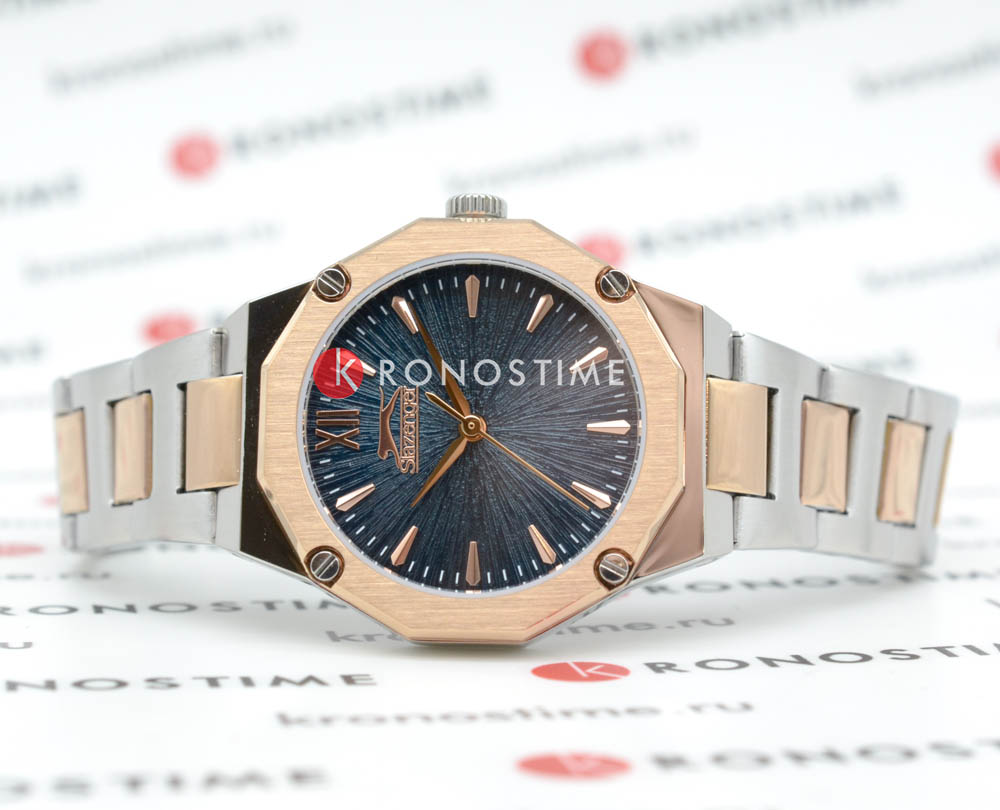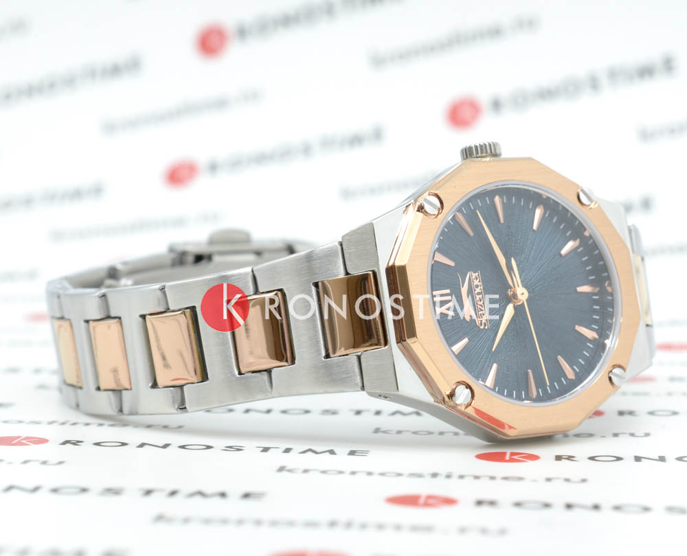 Slazenger SL.09.2374.3.03 — элегантные женские наручные часы, сочетающие изысканный дизайн и функциональность. Корпус выполнен из суперметалла, обеспечивающего лёгкость и прочность. Минеральное стеклоМинеральное стеклоМинеральное стекло представляет собой искусственно выращенный минерал кварца. Такое стекло отличается особой устойчивостью к повреждениям и царапинам. Уступает по некоторым качествам сапфировому стеклу. защищает циферблат от царапин и гарантирует превосходную читаемость. БезельБезельВнешний ободок, закрепляющий стекло. В спортивных часах так называется поворотное кольцо с делениями на циферблате, выполняет роль таймера – замеряет отрезки времени на шкале. Неподвижный безель – элемент декора. Однонаправленно вращающийся безель на дайверских часах позволяет фиксировать моменты погружения и выныривания на поверхность. с PVD-покрытиемPVDУльтратонкое покрытие наносится в технике вакуумного напыления, сочетает в себе нитрид титана особой прочности со слоем золота или оксида хрома. Несёт в себе декоративную или защитную функцию.. Синий циферблат подчёркивает стильный и современный образ. Браслет из суперметалла серебристого цвета с PVD-покрытиемPVDУльтратонкое покрытие наносится в технике вакуумного напыления, сочетает в себе нитрид титана особой прочности со слоем золота или оксида хрома. Несёт в себе декоративную или защитную функцию. обеспечивает комфортное ношение и надёжную фиксацию на запястье. Водонепроницаемость 30 метров делает модель устойчивой к случайным брызгам, что идеально подходит для повседневного использования.