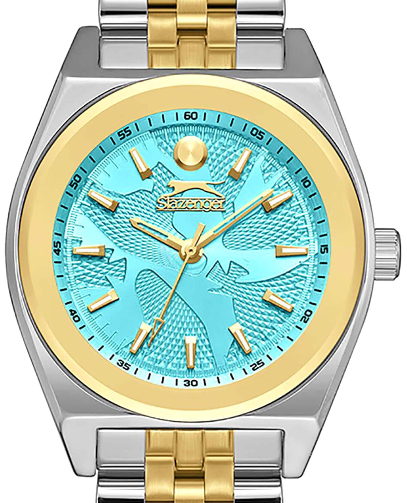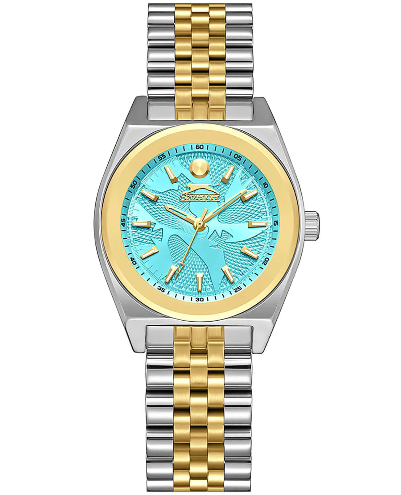 Женские кварцевые часы Slazenger SL.09.2376.3.02 – это сочетание элегантности, современного стиля и надёжности. Изящный корпус из суперметалла серебристого цвета, диаметром 32 мм и толщиной 9 мм, подчёркивает утончённость модели и делает их идеальным аксессуаром для любой ситуации – будь то деловая встреча, романтический вечер или повседневные выходы. Циферблат надёжно защищён минеральным стекломМинеральное стеклоМинеральное стекло представляет собой искусственно выращенный минерал кварца. Такое стекло отличается особой устойчивостью к повреждениям и царапинам. Уступает по некоторым качествам сапфировому стеклу., которое устойчиво к механическим повреждениям и сохраняет кристальную прозрачность. Неподвижный безельБезельВнешний ободок, закрепляющий стекло. В спортивных часах так называется поворотное кольцо с делениями на циферблате, выполняет роль таймера – замеряет отрезки времени на шкале. Неподвижный безель – элемент декора. Однонаправленно вращающийся безель на дайверских часах позволяет фиксировать моменты погружения и выныривания на поверхность. с IP-покрытиемIP-покрытиеМетод ионного напыления. Демонстрирует повышенную устойчивость к истиранию, окислению и химическим веществам. Под воздействием высокого давления и температуры около 1500°C молекулы металла надёжно соединяются с частицами корпуса часов. золотистого цвета. Браслет из суперметалла с частичным IP-покрытиемIP-покрытиеМетод ионного напыления. Демонстрирует повышенную устойчивость к истиранию, окислению и химическим веществам. Под воздействием высокого давления и температуры около 1500°C молекулы металла надёжно соединяются с частицами корпуса часов. удобно облегает запястье и фиксируется с помощью раскладной застёжкиРаскладная застёжкаТакой тип застёжки используется только на браслетах из металла. Она никогда не раскрывается полностью, происходит разделение на 2 и более частей. Раскладывающая застёжка снизит вероятность потери часов к минимуму., обеспечивая надёжность и комфорт в повседневном ношении. Утончённый стиль, внимание к деталям и практичность делают эту модель идеальным выбором для современных женщин, ценящих эстетику и функциональность. Метки покрыты люминесцентным покрытиемЛюминесцентное покрытиеПозволяет считывать показания времени в темноте. Производители наносят на стрелки, часовые индексы, безель или поверхность циферблата светонакопительный состав, дающий холодное свечение., обеспечивающим отличную читаемость в темноте. Водозащита до 30 метров позволит защитить корпус от случайных брызг или капель дождя.