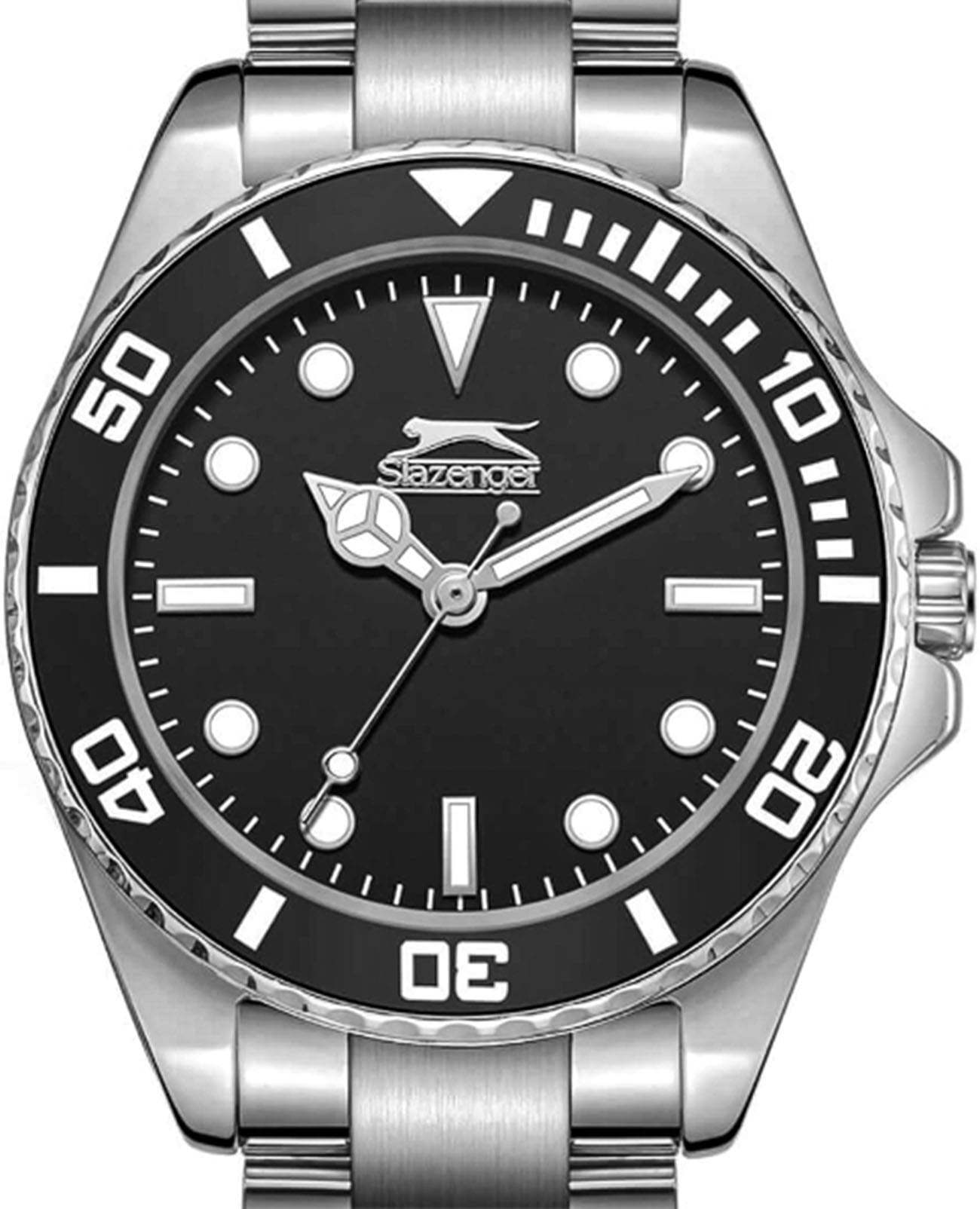 Женские кварцевые часы Slazenger — это элегантный аксессуар. Корпус диаметром 33 мм и толщиной 9 мм выполнен из суперметалла. Циферблат чёрного цвета оформлен индексами и стрелками. Поворотный безельБезельВнешний ободок, закрепляющий стекло. В спортивных часах так называется поворотное кольцо с делениями на циферблате, выполняет роль таймера – замеряет отрезки времени на шкале. Неподвижный безель – элемент декора. Однонаправленно вращающийся безель на дайверских часах позволяет фиксировать моменты погружения и выныривания на поверхность. из суперметалла с IP-покрытиемIP-покрытиеМетод ионного напыления. Демонстрирует повышенную устойчивость к истиранию, окислению и химическим веществам. Под воздействием высокого давления и температуры около 1500°C молекулы металла надёжно соединяются с частицами корпуса часов.. Циферблат защищён минеральным стекломМинеральное стеклоМинеральное стекло представляет собой искусственно выращенный минерал кварца. Такое стекло отличается особой устойчивостью к повреждениям и царапинам. Уступает по некоторым качествам сапфировому стеклу.. Механизм — кварцевый. Стрелки и метки с люминесцентным покрытиемЛюминесцентное покрытиеПозволяет считывать показания времени в темноте. Производители наносят на стрелки, часовые индексы, безель или поверхность циферблата светонакопительный состав, дающий холодное свечение., обеспечивающим хорошую читаемость в темноте. Часы оснащены браслетом из суперметалла с раскладной застёжкойРаскладная застёжкаТакой тип застёжки используется только на браслетах из металла. Она никогда не раскрывается полностью, происходит разделение на 2 и более частей. Раскладывающая застёжка снизит вероятность потери часов к минимуму.. Водонепроницаемость 50 м позволяет использовать часы в повседневных условиях. Гарантия — 12 месяцев. Идеальный выбор для тех, кто ценит стиль и качество.