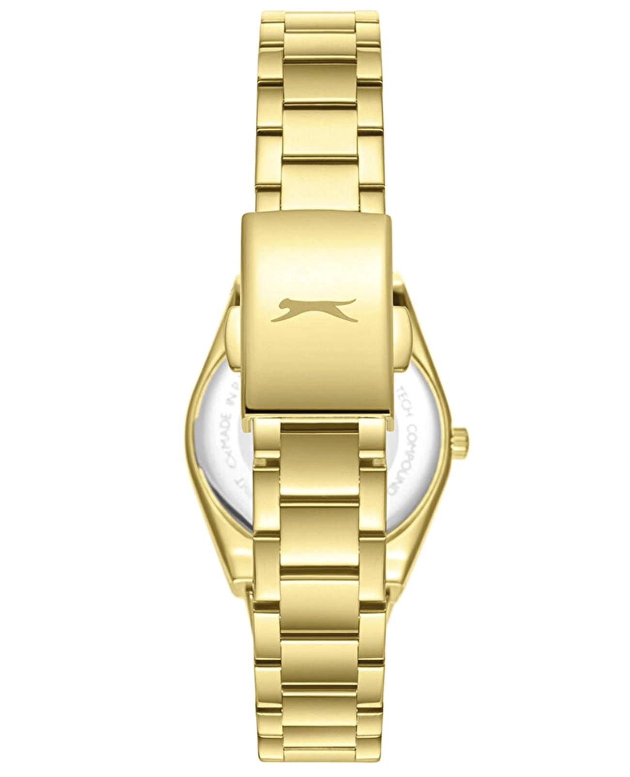 Женские кварцевые часы Slazenger — это элегантный аксессуар. Корпус диаметром 28 мм и толщиной 7,5 мм выполнен из суперметалла с IP-покрытиемIP-покрытиеМетод ионного напыления. Демонстрирует повышенную устойчивость к истиранию, окислению и химическим веществам. Под воздействием высокого давления и температуры около 1500°C молекулы металла надёжно соединяются с частицами корпуса часов.. Циферблат серебристого цвета оформлен индексами и стрелками. Циферблат защищён минеральным стекломМинеральное стеклоМинеральное стекло представляет собой искусственно выращенный минерал кварца. Такое стекло отличается особой устойчивостью к повреждениям и царапинам. Уступает по некоторым качествам сапфировому стеклу.. Механизм — кварцевый. Часы оснащены браслетом из суперметалла с IP-покрытиемIP-покрытиеМетод ионного напыления. Демонстрирует повышенную устойчивость к истиранию, окислению и химическим веществам. Под воздействием высокого давления и температуры около 1500°C молекулы металла надёжно соединяются с частицами корпуса часов. на раскладной застёжкеРаскладная застёжкаТакой тип застёжки используется только на браслетах из металла. Она никогда не раскрывается полностью, происходит разделение на 2 и более частей. Раскладывающая застёжка снизит вероятность потери часов к минимуму.. Водонепроницаемость 50 м позволяет использовать часы в повседневных условиях. Гарантия — 12 месяцев. Идеальный выбор для тех, кто ценит стиль и качество.