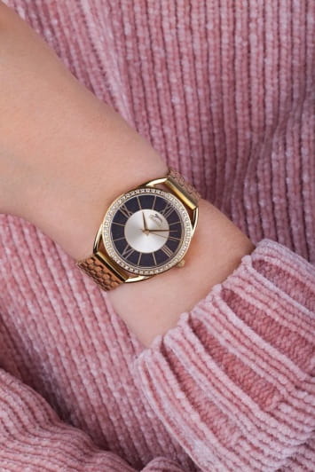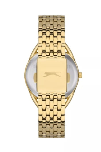 Женские кварцевые часы Slazenger SL.09.6537.3.03 – это сочетание элегантности, современного стиля и надёжности. Изящный корпус из суперметалла с IP-покрытиемIP-покрытиеМетод ионного напыления. Демонстрирует повышенную устойчивость к истиранию, окислению и химическим веществам. Под воздействием высокого давления и температуры около 1500°C молекулы металла надёжно соединяются с частицами корпуса часов. золотистого цвета, диаметром 35 мм и толщиной 9 мм, подчёркивает утончённость модели и делает их идеальным аксессуаром для любой ситуации – будь то деловая встреча, романтический вечер или повседневные выходы. Циферблат надёжно защищён минеральным стекломМинеральное стеклоМинеральное стекло представляет собой искусственно выращенный минерал кварца. Такое стекло отличается особой устойчивостью к повреждениям и царапинам. Уступает по некоторым качествам сапфировому стеклу., которое устойчиво к механическим повреждениям и сохраняет кристальную прозрачность. БезельБезельВнешний ободок, закрепляющий стекло. В спортивных часах так называется поворотное кольцо с делениями на циферблате, выполняет роль таймера – замеряет отрезки времени на шкале. Неподвижный безель – элемент декора. Однонаправленно вращающийся безель на дайверских часах позволяет фиксировать моменты погружения и выныривания на поверхность. украшен фианитами. Браслет из суперметалла с IP-покрытиемIP-покрытиеМетод ионного напыления. Демонстрирует повышенную устойчивость к истиранию, окислению и химическим веществам. Под воздействием высокого давления и температуры около 1500°C молекулы металла надёжно соединяются с частицами корпуса часов. удобно облегает запястье и фиксируется с помощью раскладной застёжкиРаскладная застёжкаТакой тип застёжки используется только на браслетах из металла. Она никогда не раскрывается полностью, происходит разделение на 2 и более частей. Раскладывающая застёжка снизит вероятность потери часов к минимуму., обеспечивая надёжность и комфорт в повседневном ношении. Утончённый стиль, внимание к деталям и практичность делают эту модель идеальным выбором для современных женщин, ценящих эстетику и функциональность. Водозащита до 30 метров позволит защитить корпус от случайных брызг или капель дождя.