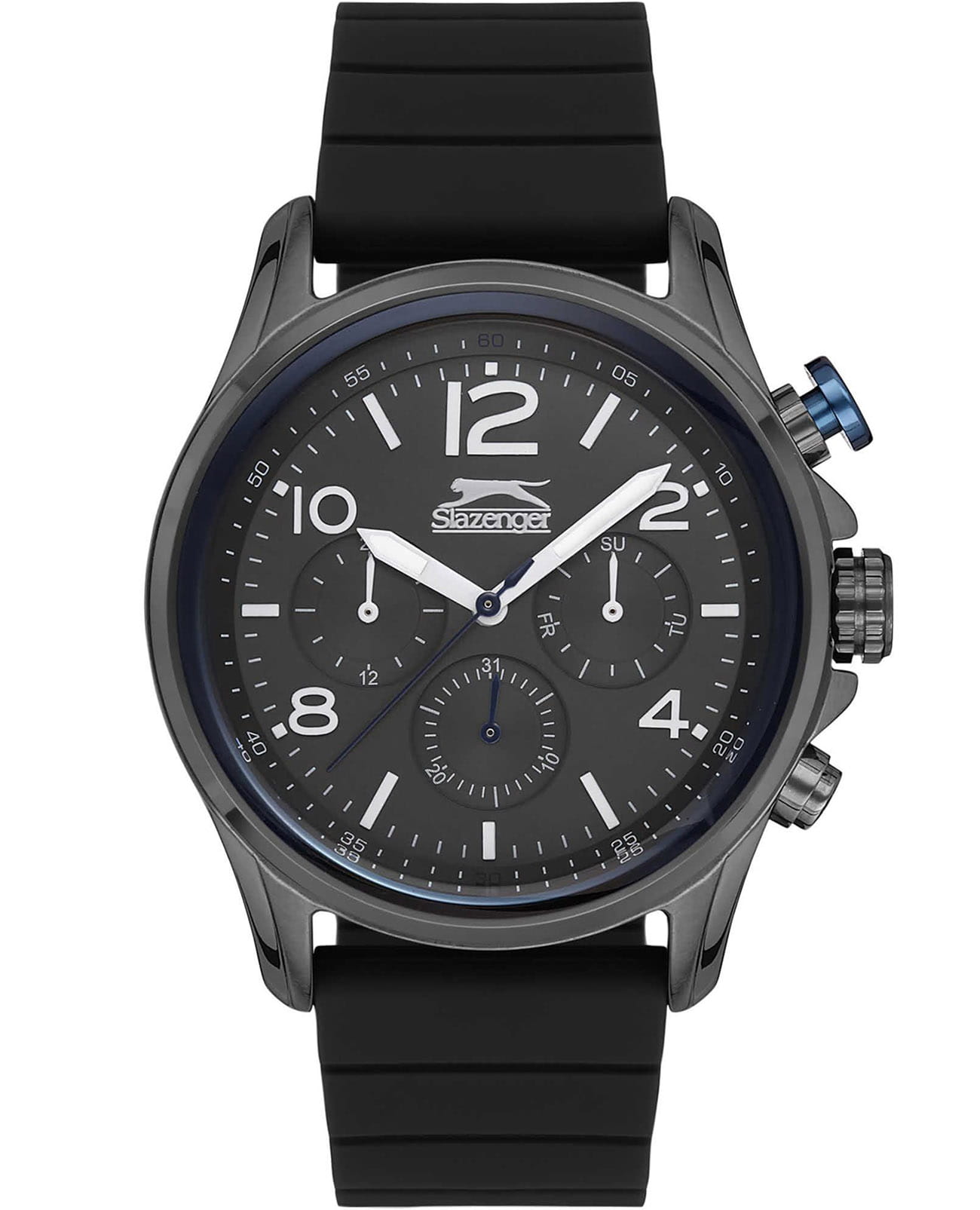 Часы Slazenger SL.09.6552.2.01 воплощают в себе элегантность и практичность, идеально подходящие для современных мужчин. Черный циферблат, защищенный минеральным стекломМинеральное стеклоМинеральное стекло представляет собой искусственно выращенный минерал кварца. Такое стекло отличается особой устойчивостью к повреждениям и царапинам. Уступает по некоторым качествам сапфировому стеклу., заключен в такой же черный корпус диаметром 48 мм, который изготовлен из прочного суперметалла с IP-покрытиемIP-покрытиеМетод ионного напыления. Демонстрирует повышенную устойчивость к истиранию, окислению и химическим веществам. Под воздействием высокого давления и температуры около 1500°C молекулы металла надёжно соединяются с частицами корпуса часов.. Надежный кварцевый механизм обеспечивает точность, а водозащита 5 ATM делает их устойчивыми к воздействию воды. Силиконовый ремень со стандартной застежкой подчеркивает современный стиль и комфортно сидит на запястье. Часы оснащены 24-часовым указателем времени, а также функциями отображения даты и дня недели. Люминесцентное покрытиеЛюминесцентное покрытиеПозволяет считывать показания времени в темноте. Производители наносят на стрелки, часовые индексы, безель или поверхность циферблата светонакопительный состав, дающий холодное свечение. на стрелках обеспечивает отличную видимость в темноте.