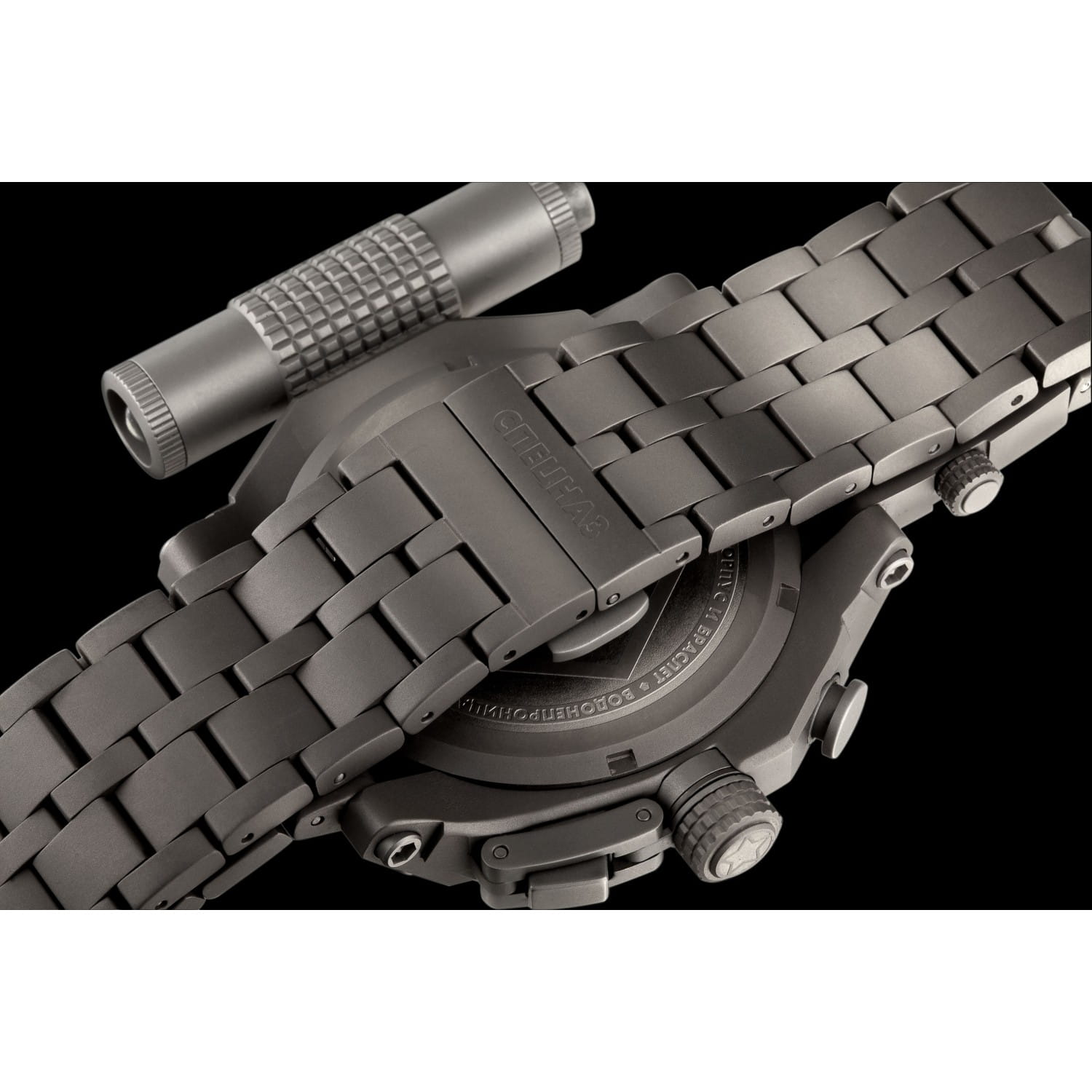 Водозащита 100 метров (10 ATM) позволяет использовать часы для плавания и других водных видов спорта. Титановый браслет с застёжкой раскладной застёжкойРаскладная застёжкаТакой тип застёжки используется только на браслетах из металла. Она никогда не раскрывается полностью, происходит разделение на 2 и более частей. Раскладывающая застёжка снизит вероятность потери часов к минимуму. и системой блокировки обеспечивает комфортное ношение и надёжную фиксацию на запястье.