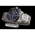 Часы Спецназ "5 Стихий" С9157339-5130.D — коллекционная модель, посвящённая стихии Воды, символизирующая доблесть морской пехоты. Корпус диаметром 45 мм выполнен из титана с частичным PVD-покрытиемPVDУльтратонкое покрытие наносится в технике вакуумного напыления, сочетает в себе нитрид титана особой прочности со слоем золота или оксида хрома. Несёт в себе декоративную или защитную функцию. чёрного цвета, а синий циферблат защищён сапфировым стекломСапфировое стеклоПрочный и надёжный материал из кристалла сапфира синтетического происхождения, характеризующийся особой твёрдостью и устойчивостью к царапинам и повреждениям..