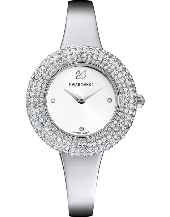 Женские часы Swarovski Crystal Rose 5483853 – это элегантные и утончённые часы, отличающиеся непревзойдённым сиянием.  БезельБезельВнешний ободок, закрепляющий стекло. В спортивных часах так называется поворотное кольцо с делениями на циферблате, выполняет роль таймера – замеряет отрезки времени на шкале. Неподвижный безель – элемент декора. Однонаправленно вращающийся безель на дайверских часах позволяет фиксировать моменты погружения и выныривания на поверхность. украшен микропаве из 215 кристаллов. Завершающие штрихи уникального дизайна – корпус и браслет из нержавеющей стали и серебристый циферблат с рисунком в виде солнечных лучей и тремя метками из прозрачных кристаллов. Надежное минеральное стеклоМинеральное стеклоМинеральное стекло представляет собой искусственно выращенный минерал кварца. Такое стекло отличается особой устойчивостью к повреждениям и царапинам. Уступает по некоторым качествам сапфировому стеклу. защищает часы от царапин и долго сохраняет первоначальный внешний вид. Водозащита 50 метров делает часы практичными для повседневного использования.