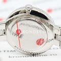 Корпус диаметром 32 мм выполнен из нержавеющей стали, что обеспечивает прочность и долговечность. БезельБезельВнешний ободок, закрепляющий стекло. В спортивных часах так называется поворотное кольцо с делениями на циферблате, выполняет роль таймера – замеряет отрезки времени на шкале. Неподвижный безель – элемент декора. Однонаправленно вращающийся безель на дайверских часах позволяет фиксировать моменты погружения и выныривания на поверхность. украшен кристаллами Swarovski, создающими утончённый блеск. Минеральное стеклоМинеральное стеклоМинеральное стекло представляет собой искусственно выращенный минерал кварца. Такое стекло отличается особой устойчивостью к повреждениям и царапинам. Уступает по некоторым качествам сапфировому стеклу. защищает циферблат от царапин и повреждений.