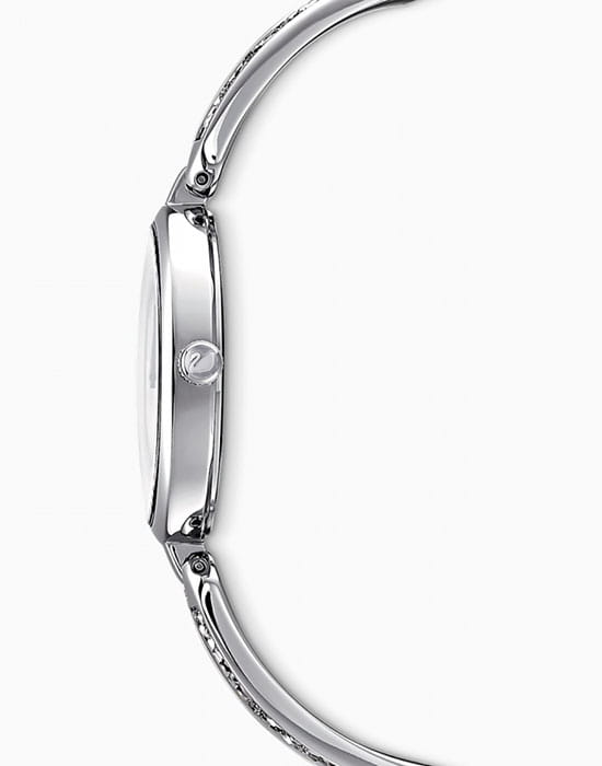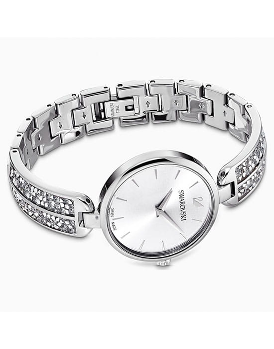 Женские швейцарские часы с кристаллами Swarovski Swarovski 5519309, кварцевый механизм с высокой точностью. Класс водозащиты: 50 метров, позволит защитить корпус от случайных брызг или капель дождя. Корпус часов изготовлен из стали, серебристого цвета.