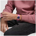 Эти ярко окрашенные ретро-часы Swatch SO28K111 вдохновлены часами Swatch из 90-х: SKYCHART GN705. Их многоцветный неоновый циферблат помещен в прозрачный корпус, изготовленный из биоматериала. Ремешок силиконовый ярко-розового цвета и голубая пряжка завершают неоновый образ этих винтажных часов Swatch.