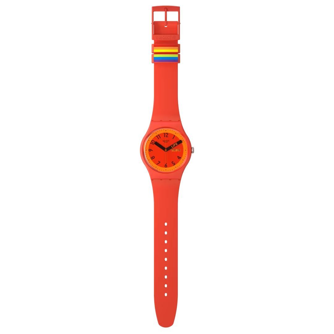 Часы Swatch SO29R705 — стильный и надежный аксессуар. Эти часы Swatch Pride 2023 Special отличаются циферблатом с красным принтом и красным стеклом из биоматериалов, а также корпусом из тех же материалов. Часовая и минутная стрелки выполнены в черном цвете, при этом минутная стрелка символизирует значение красного цвета в флаге Прайда: жизнь. Ремешок этих красных часов дополнен двумя специальными петлями, которые, соединяясь, образуют радугу. Ремешок силиконовый на классической застежке. Имеется окошко даты и дня недели в положении 3 часа. Внутри часов установлен надежный кварцевый механизм, который обеспечивает точность хода. Эти часы водонепроницаемы до 30 метров, что позволяет не беспокоиться о случайных брызгах или дождевых каплях. Swatch SO29R705 — это идеальный выбор для тех, кто ценит сочетание стиля, комфорта и функциональности в одном аксессуаре.