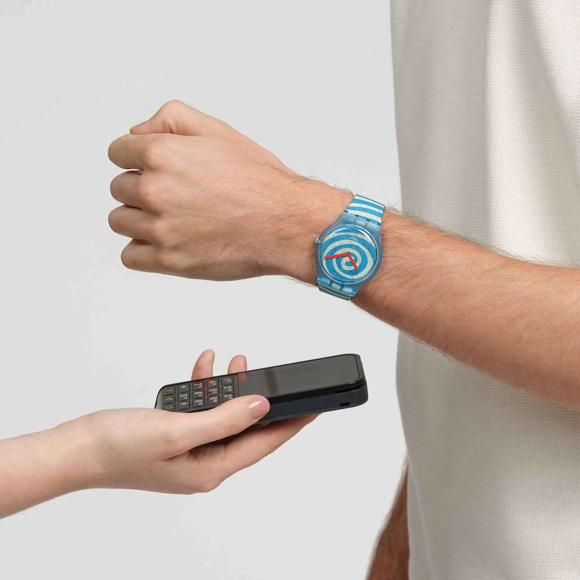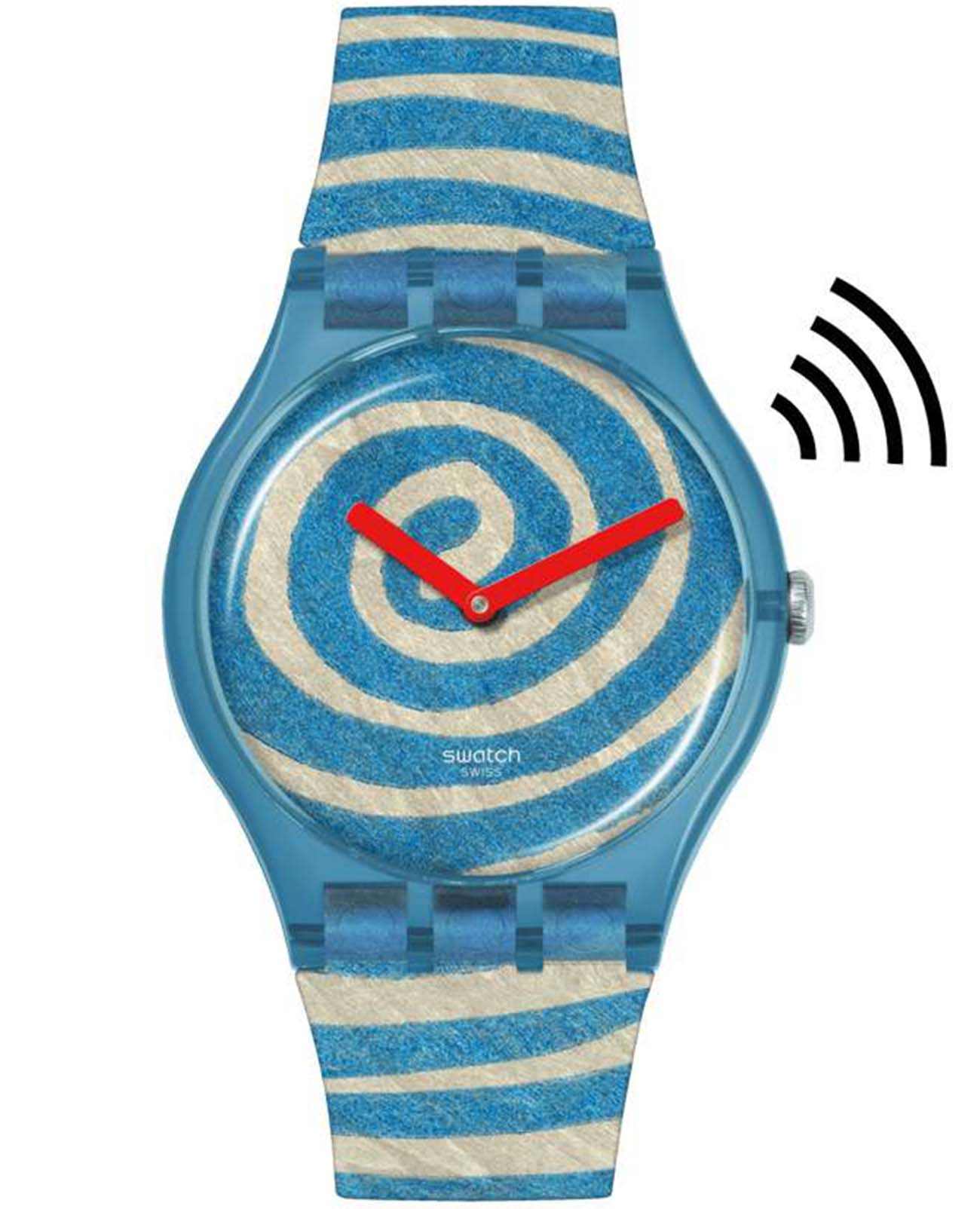 Часы Swatch SVIZ105-5300 — это стильный и современный аксессуар для тех, кто ценит лёгкость и комфорт. Часы идеально подойдут как для мужчин, так и для женщин. Эти часы из коллекции Swatch x Tate Gallery заключены в прозрачный матово-голубой корпус. Циферблат и матово-голубой ремешок украшены принтом с репродукцией картины Луизы Буржуа «SPIRALS» («Спирали»). Отсчет времени ведут минутная и часовая стрелки красного цвета. На прозрачном матовом тренчике размещен логотип Tate Gallery. Эти часы имеют NFC модуль, поэтому это несомненно лучший способ оплачивать покупки. Водозащита 30 метров делает часы практичными для повседневного использования. Эти часы подойдут для повседневного ношения и станут ярким акцентом в вашем наряде.