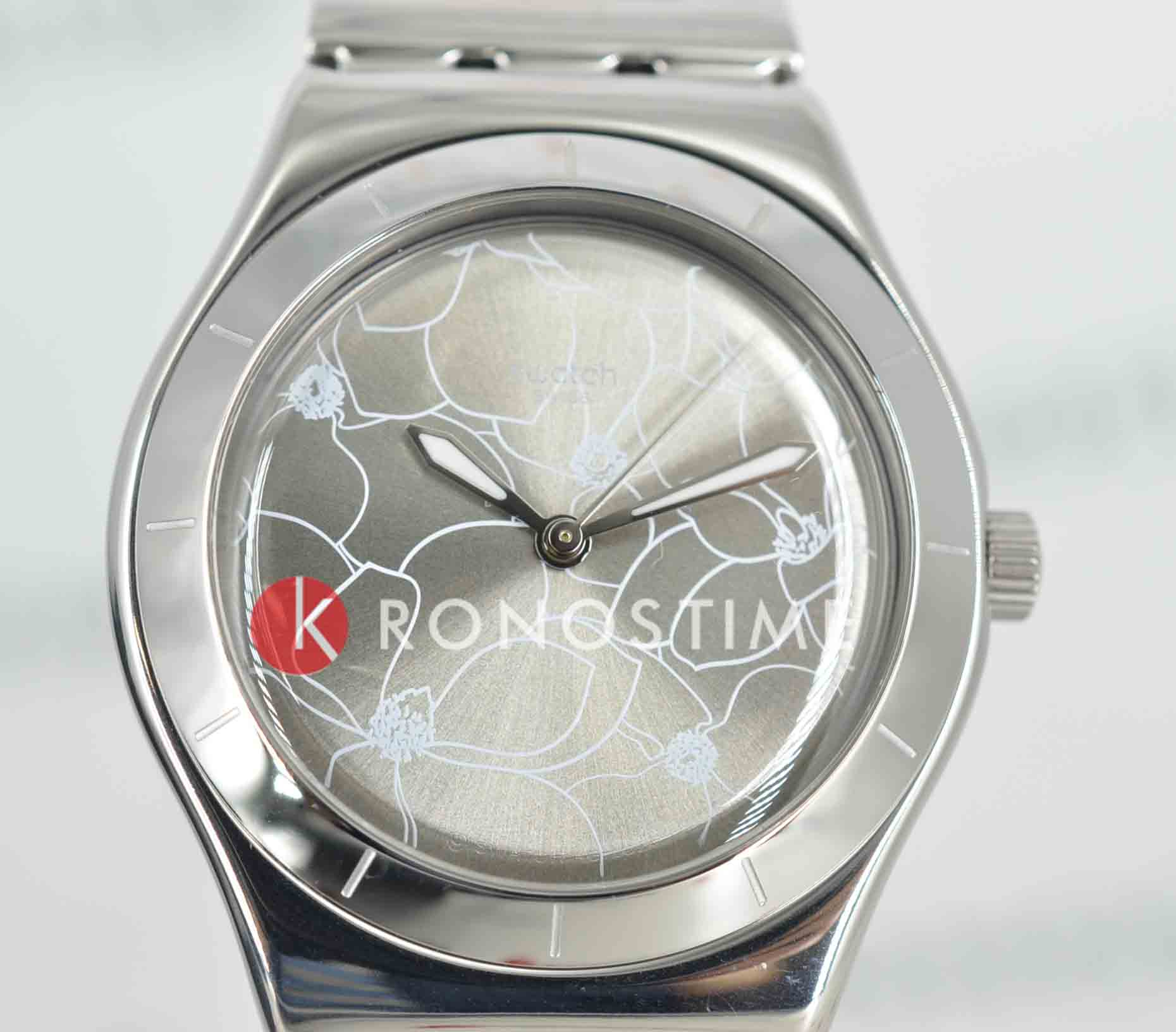Модель Swatch YLS237G — это утончённые женские часы с изысканным дизайном и надёжным механизмом. Корпус диаметром 33 мм выполнен из нержавеющей стали, подчёркивая элегантность и долговечность модели. Циферблат украшен изящным цветочным узором, а стрелки и метки покрыты люминесцентным покрытиемЛюминесцентное покрытиеПозволяет считывать показания времени в темноте. Производители наносят на стрелки, часовые индексы, безель или поверхность циферблата светонакопительный состав, дающий холодное свечение., что обеспечивает хорошую читаемость в условиях недостаточного освещения.