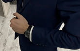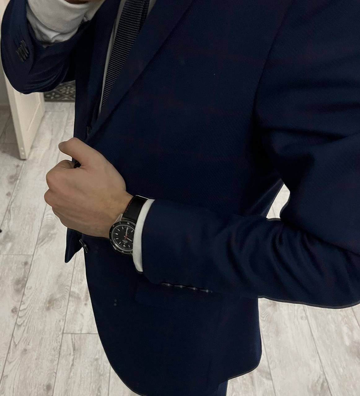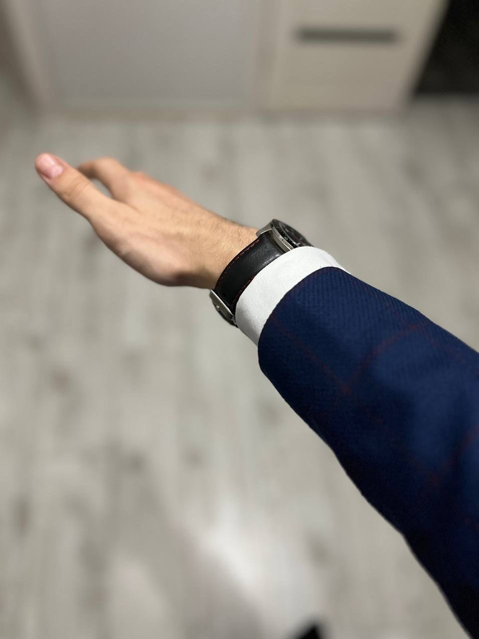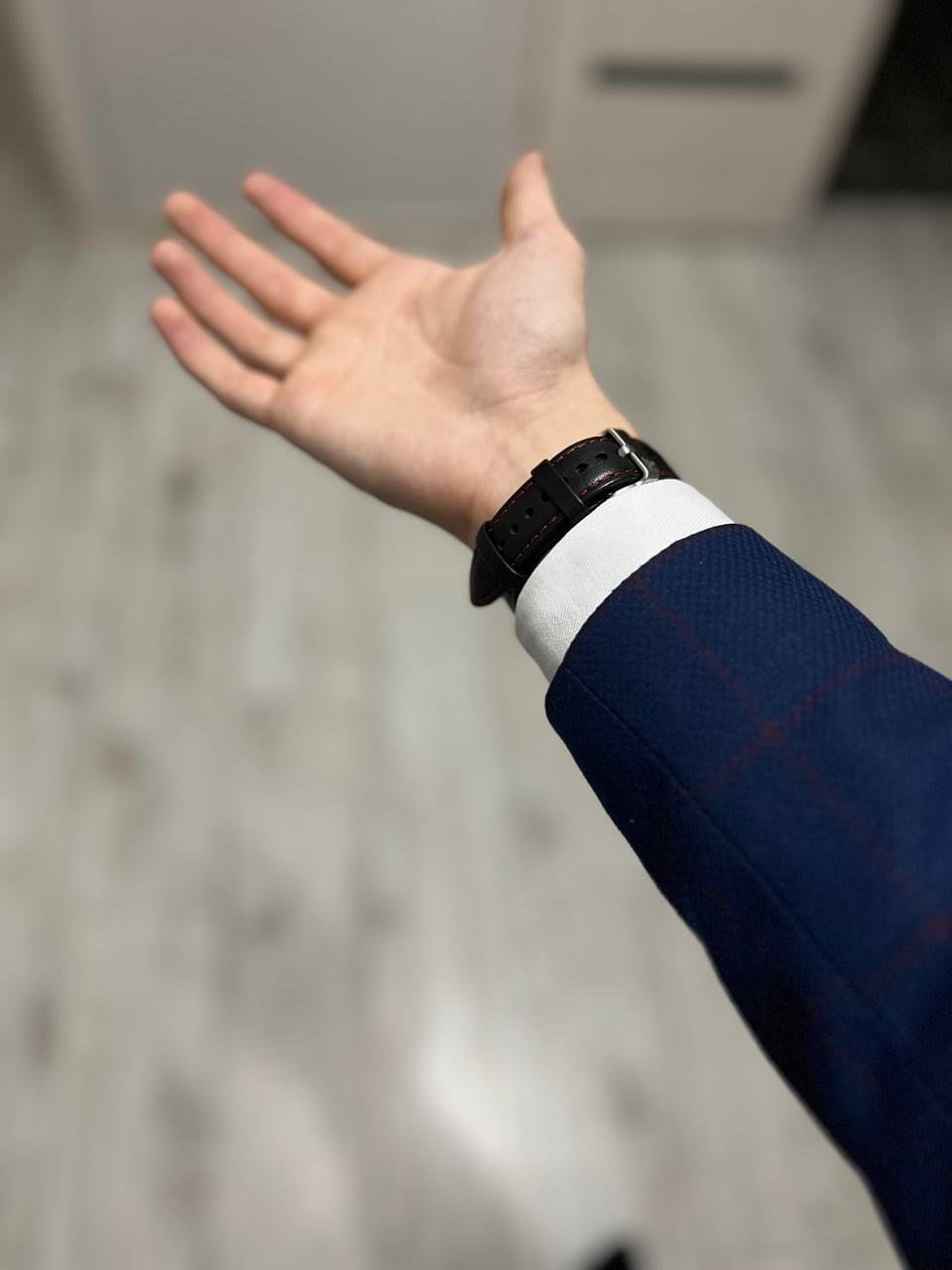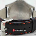 Ремешок из натуральной чёрной кожи с красной строчкой и классической застёжкой подчёркивает спортивный характер часов, обеспечивая комфортное ношение. Водозащита до 5 ATM делает модель подходящей для повседневного использования, включая случайные контакты с водой.