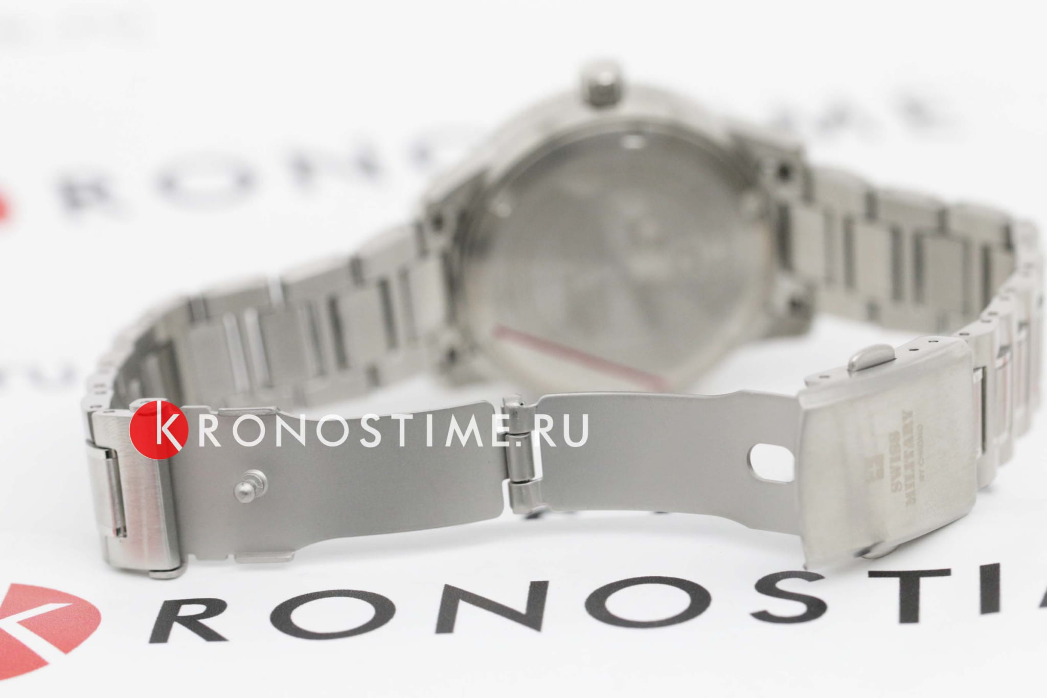 Кварцевый механизм с высокой точностью. Минеральное стеклоМинеральное стеклоМинеральное стекло представляет собой искусственно выращенный минерал кварца. Такое стекло отличается особой устойчивостью к повреждениям и царапинам. Уступает по некоторым качествам сапфировому стеклу. устойчивое к появлению царапин, обладающее высокой прозрачностью. Стрелки с люминесцентным покрытиемЛюминесцентное покрытиеПозволяет считывать показания времени в темноте. Производители наносят на стрелки, часовые индексы, безель или поверхность циферблата светонакопительный состав, дающий холодное свечение.. БезельБезельВнешний ободок, закрепляющий стекло. В спортивных часах так называется поворотное кольцо с делениями на циферблате, выполняет роль таймера – замеряет отрезки времени на шкале. Неподвижный безель – элемент декора. Однонаправленно вращающийся безель на дайверских часах позволяет фиксировать моменты погружения и выныривания на поверхность. вращающийся с PVD-покрытиемPVDУльтратонкое покрытие наносится в технике вакуумного напыления, сочетает в себе нитрид титана особой прочности со слоем золота или оксида хрома. Несёт в себе декоративную или защитную функцию.. Индексы украшены кристаллами. Класс водозащиты: 200 метров, позволит плавать, нырять и заниматься другими водными видами спорта. Корпус часов изготовлен из нержавеющей стали. Браслет с раскладной застёжкойРаскладная застёжкаТакой тип застёжки используется только на браслетах из металла. Она никогда не раскрывается полностью, происходит разделение на 2 и более частей. Раскладывающая застёжка снизит вероятность потери часов к минимуму..