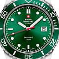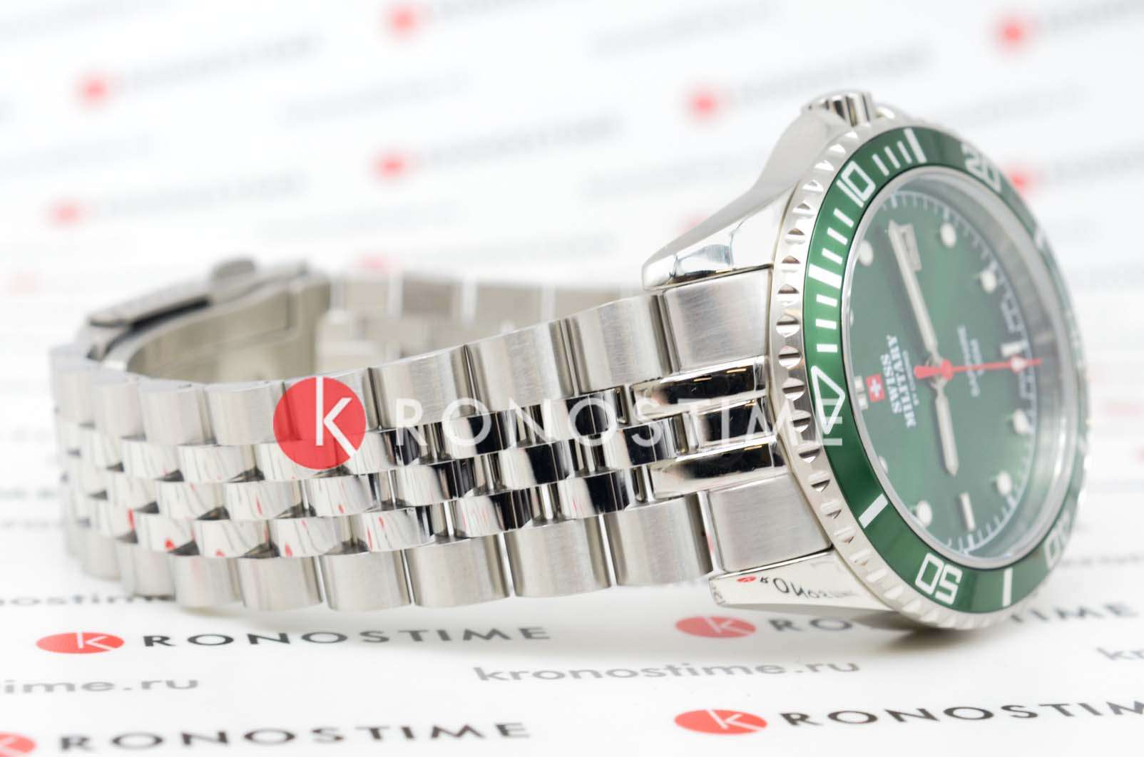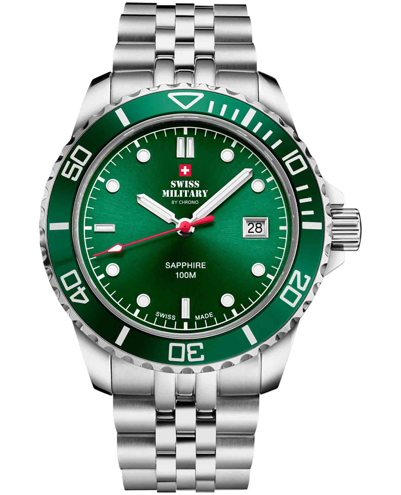 Модель SM34109.03 от Swiss Military by Chrono — это надёжные швейцарские спортивные часы, сочетающие в себе прочность, функциональность и элегантный дизайн. Корпус и браслет выполнены из нержавеющей стали, подчёркивая прочность и элегантность конструкции. Циферблат с солнечным узором и крупными метками, покрытыми люминесцентным покрытиемЛюминесцентное покрытиеПозволяет считывать показания времени в темноте. Производители наносят на стрелки, часовые индексы, безель или поверхность циферблата светонакопительный состав, дающий холодное свечение., обеспечивает отличную читаемость в любых условиях. Часы оснащены швейцарским кварцевым механизмом, обеспечивающим точный ход. Циферблат защищён сапфировым стекломСапфировое стеклоПрочный и надёжный материал из кристалла сапфира синтетического происхождения, характеризующийся особой твёрдостью и устойчивостью к царапинам и повреждениям., устойчивым к царапинам. Установлена раскладная застёжкаРаскладная застёжкаТакой тип застёжки используется только на браслетах из металла. Она никогда не раскрывается полностью, происходит разделение на 2 и более частей. Раскладывающая застёжка снизит вероятность потери часов к минимуму. для надёжной фиксации на запястье. Односторонний вращающийся безель с PVD-покрытиемPVDУльтратонкое покрытие наносится в технике вакуумного напыления, сочетает в себе нитрид титана особой прочности со слоем золота или оксида хрома. Несёт в себе декоративную или защитную функцию. позволяет точно отслеживать время. Модель обладает водонепроницаемостью до 100 метров, что делает её подходящей для плавания и сноркелинга.