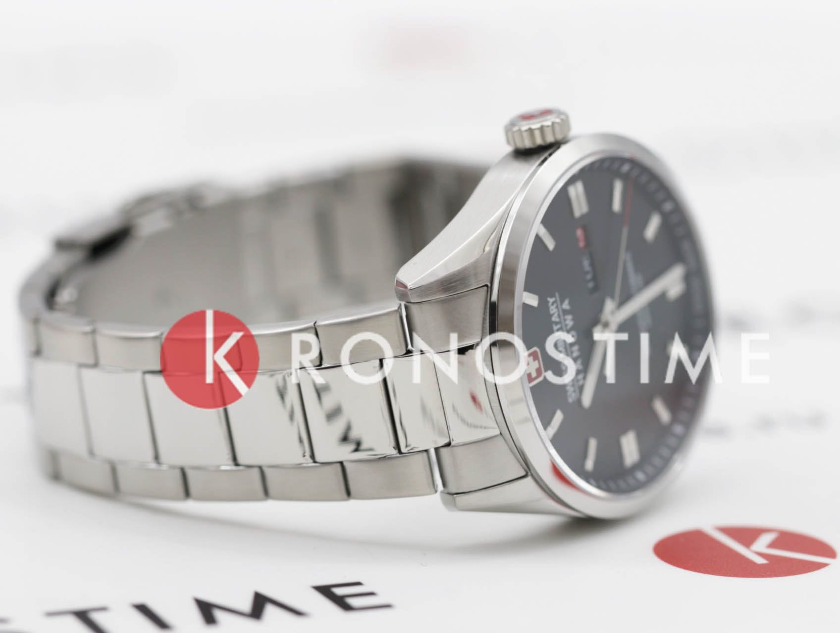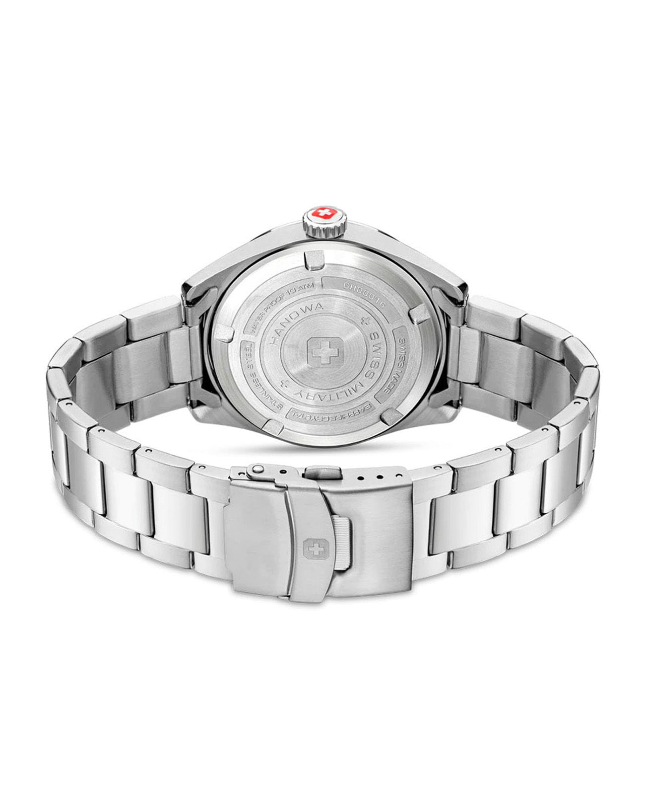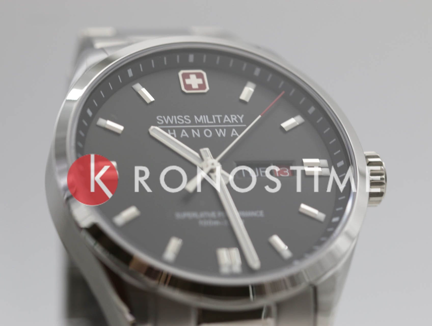 Мужские швейцарские часы с сапфировым стекломСапфировое стеклоПрочный и надёжный материал из кристалла сапфира синтетического происхождения, характеризующийся особой твёрдостью и устойчивостью к царапинам и повреждениям. Swiss Military Hanowa Maxed SMWGH0001601, кварцевый механизм с высокой точностью. Сапфировое стеклоСапфировое стеклоПрочный и надёжный материал из кристалла сапфира синтетического происхождения, характеризующийся особой твёрдостью и устойчивостью к царапинам и повреждениям. устойчивое к появлению царапин, обладающее высокой прозрачностью. Корпус часов изготовлен из стали. Окошко даты находится в положении 3 часов. Стрелки и метки с люминесцентным покрытиемЛюминесцентное покрытиеПозволяет считывать показания времени в темноте. Производители наносят на стрелки, часовые индексы, безель или поверхность циферблата светонакопительный состав, дающий холодное свечение.. Класс водозащиты: 100 метров, позволит плавать, нырять и заниматься другими водными видами спорта. Стальной браслет на раскладной застёжкеРаскладная застёжкаТакой тип застёжки используется только на браслетах из металла. Она никогда не раскрывается полностью, происходит разделение на 2 и более частей. Раскладывающая застёжка снизит вероятность потери часов к минимуму..