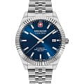 Мужские механические швейцарские часы с автоподзаводом Swiss Military Hanowa Diligenter SMWGL0002102. Сапфировое стеклоСапфировое стеклоПрочный и надёжный материал из кристалла сапфира синтетического происхождения, характеризующийся особой твёрдостью и устойчивостью к царапинам и повреждениям. устойчивое к появлению царапин, обладающее высокой прозрачностью. Стрелки и метки с люминесцентным покрытиемЛюминесцентное покрытиеПозволяет считывать показания времени в темноте. Производители наносят на стрелки, часовые индексы, безель или поверхность циферблата светонакопительный состав, дающий холодное свечение.. Циферблат выполнен по технологии Sunray (солнечные лучи). Окошко даты находится в положении 3 часов. Класс водозащиты: 100 метров, позволит плавать, нырять и заниматься другими водными видами спорта. Стальной браслет на раскладной застёжкеРаскладная застёжкаТакой тип застёжки используется только на браслетах из металла. Она никогда не раскрывается полностью, происходит разделение на 2 и более частей. Раскладывающая застёжка снизит вероятность потери часов к минимуму..